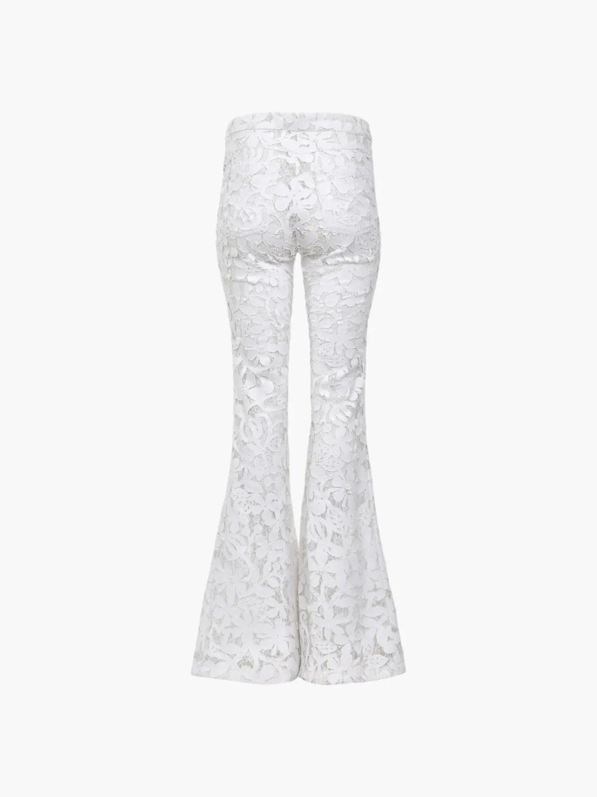 Our Francesca Miranda Crete Lace Denim Pants are tailored style lace jeans with an elegant flair leg. Pair with your favorite top for a stunning look on any occasion. Handcrafted by female heads of households in Colombia.