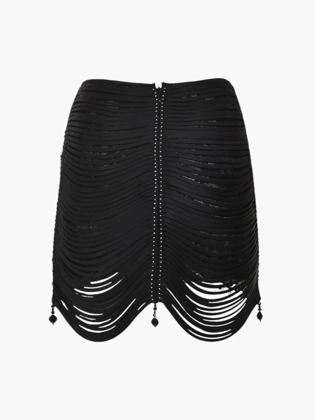 Our Francesca Miranda Danielle Mini Skirt in Black is a handmade mini skirt made from silk and fringe.Handcrafted by female heads of households in Colombia.