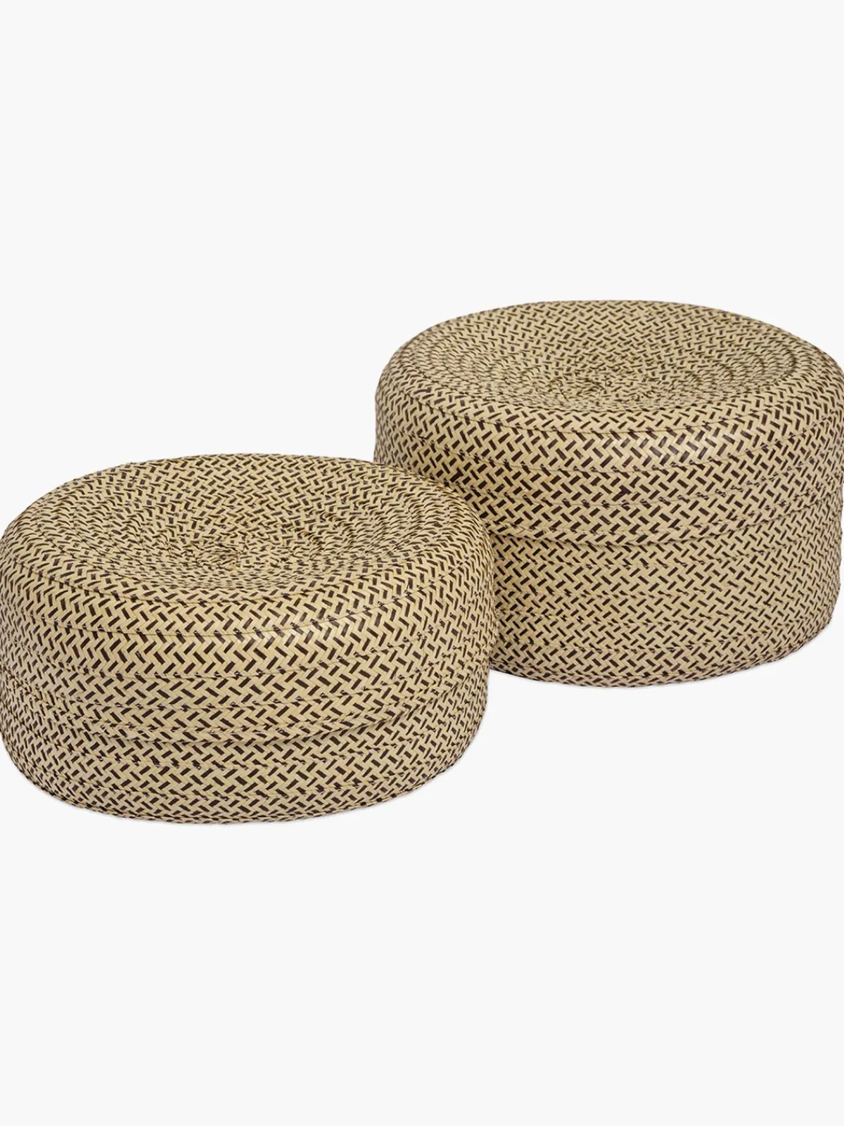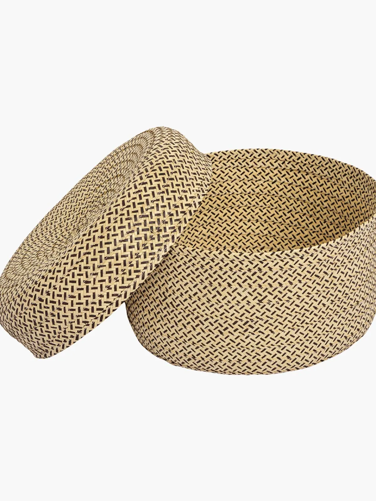 Our Francesca Miranda Eme Cofre in Duo Tone is the perfect catchall for all sorts of small items and objects. It features a classic round shape with a round lift-top lid. Handcrafted by artisans in Colombia.