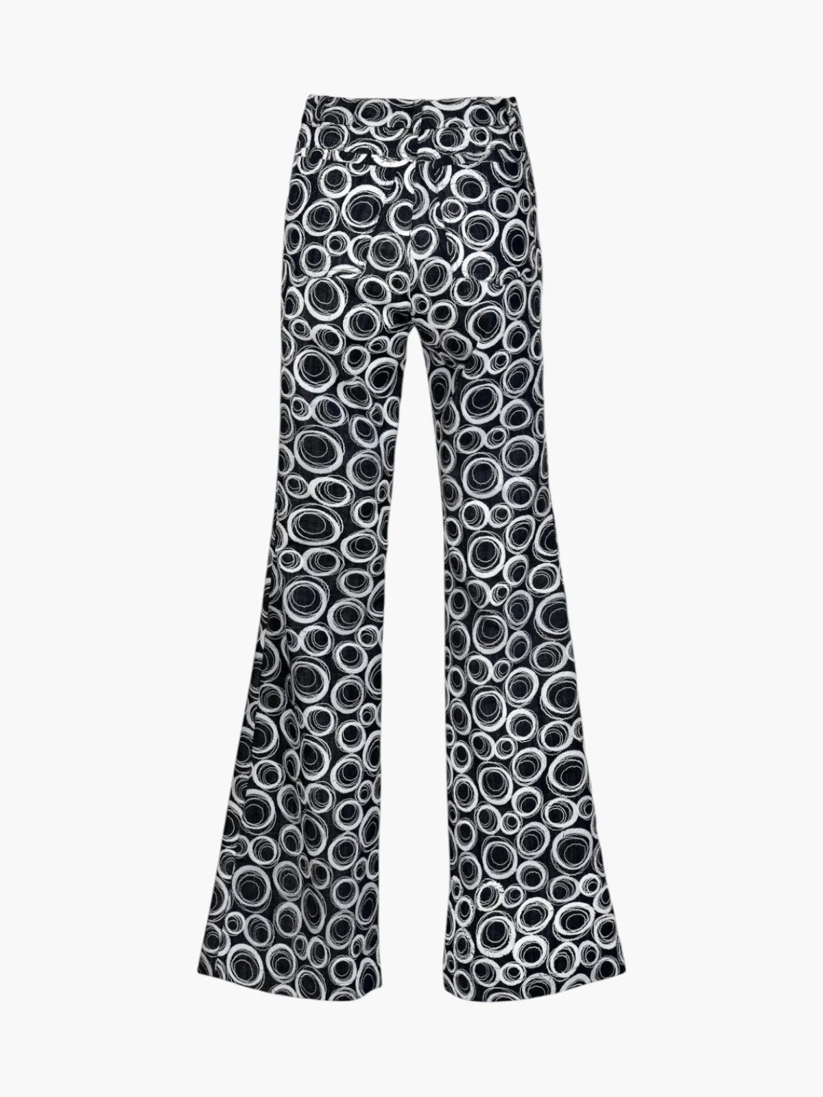 Our Francesca Miranda Eras Denim Pants reimagine classic tailoring with a contemporary sensibility. Featuring a structured fit and a subtle flare, they sculpt a sleek, elongated silhouette, while the bold circular pattern introduces a modern, artistic allure. Handcrafted by female heads of households in Colombia.