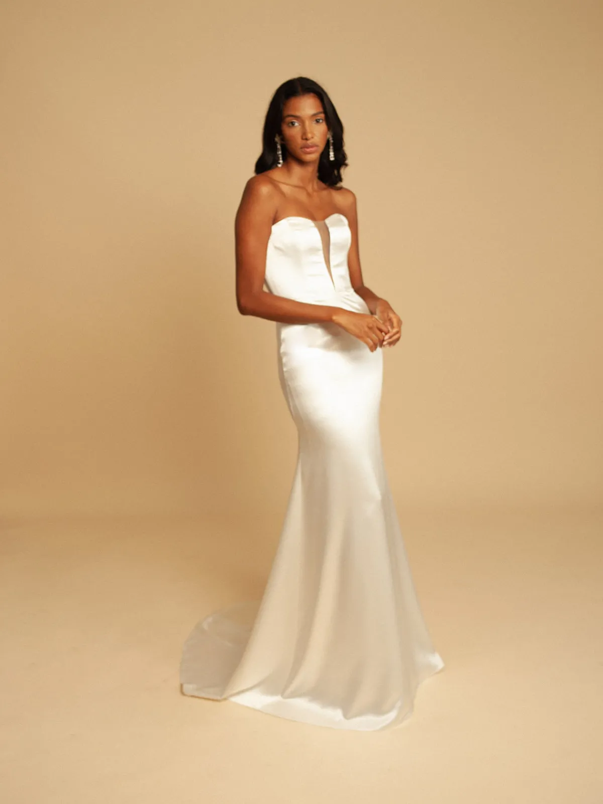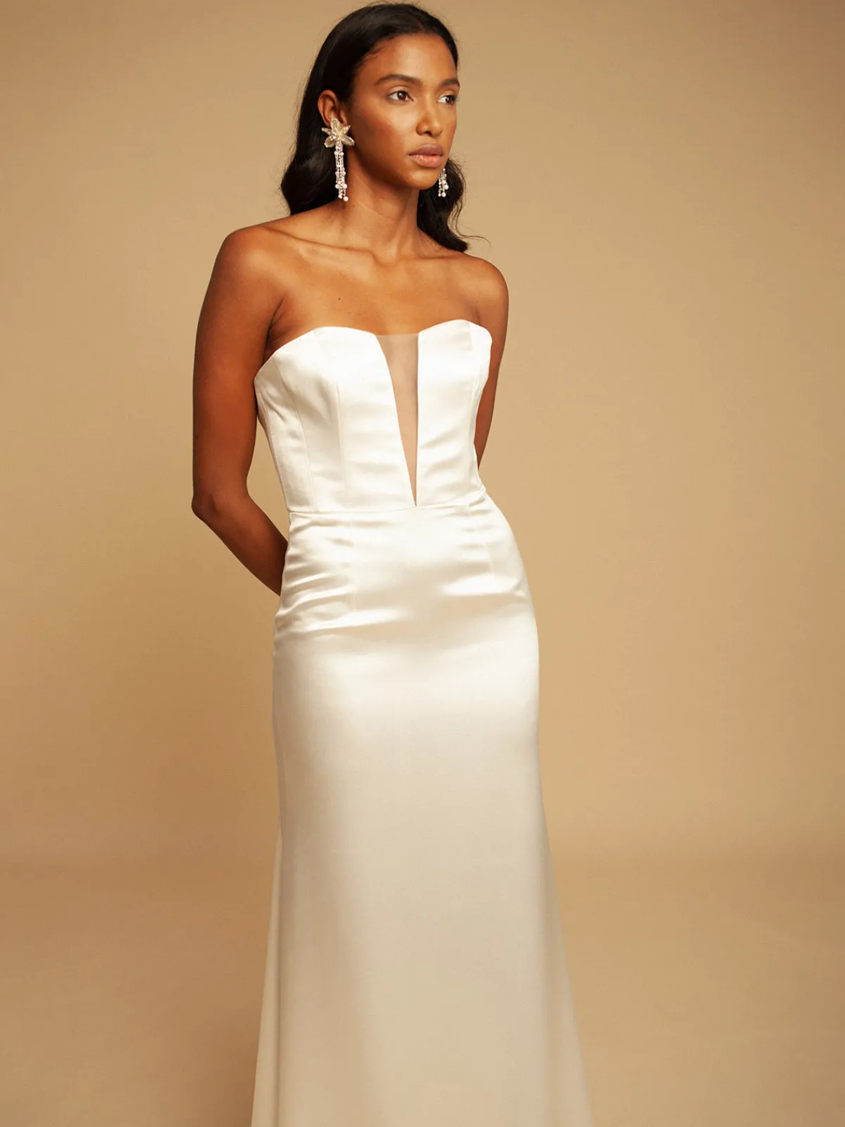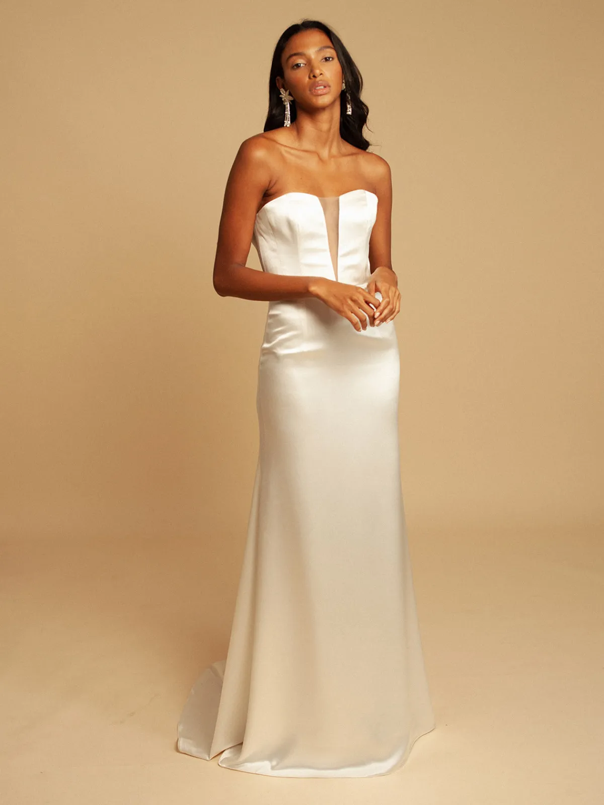 Our Francesca Miranda Grace Dress boasts a figure-flaunting mermaid silhouette with a strapless bodice, a V-neckline with a sheer illusion insert, and a back zipper. Handcrafted in Colombia by female heads of households.