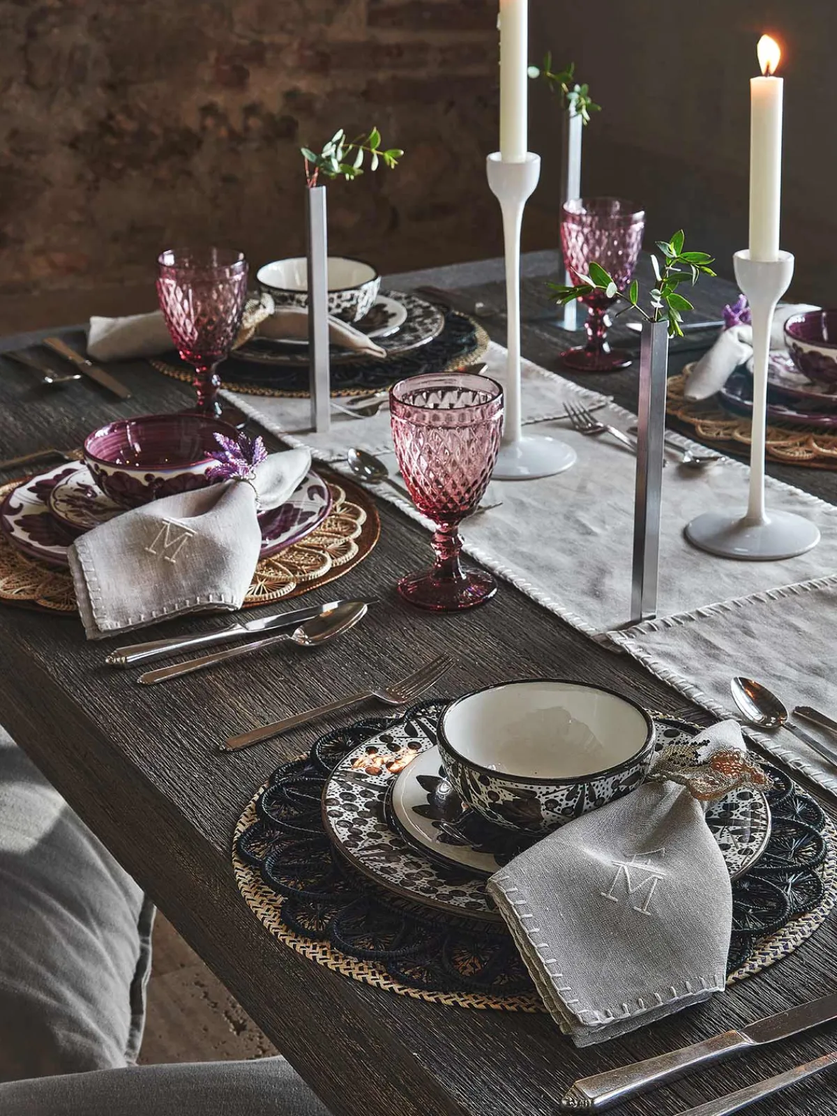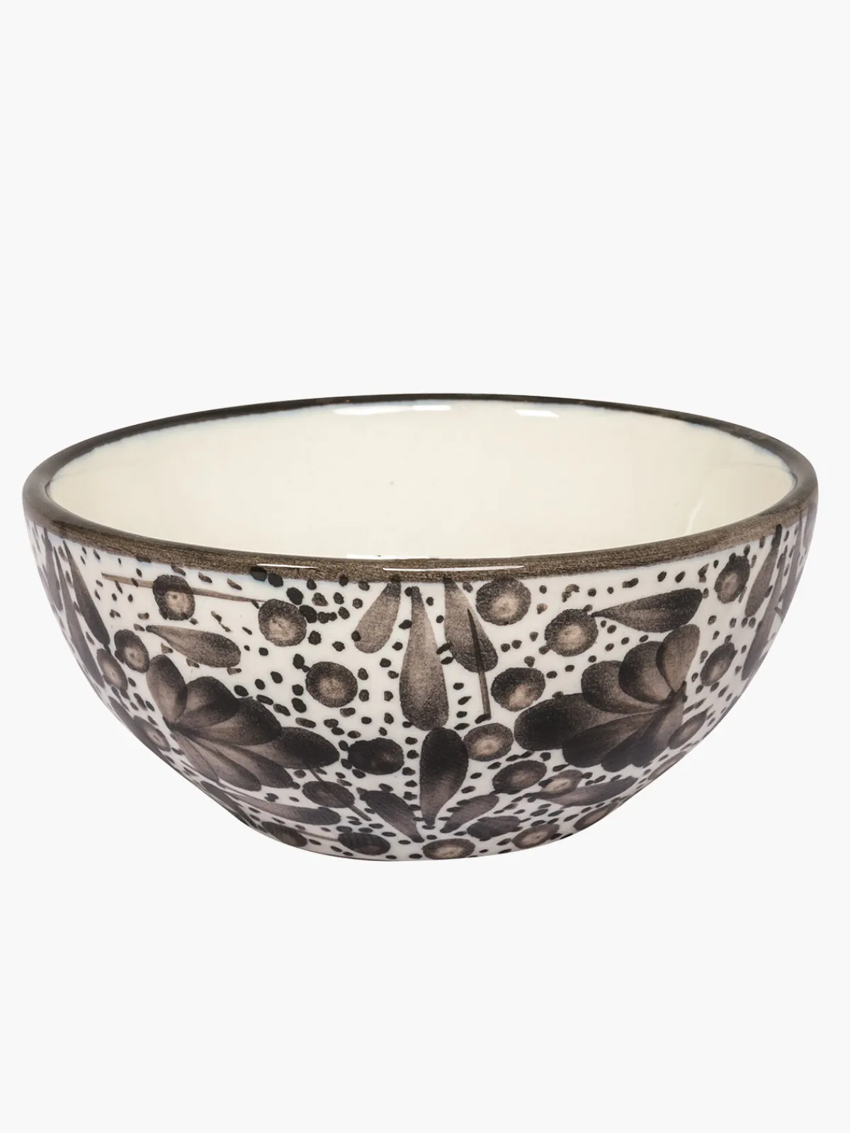 Our Francesca Miranda Hand Painted Ceramic Tableware in Noche includes a dinner plate, bowl, salad plate, cup, and saucer. Hand painted with distinctive patterns, this place setting adds elegance to any table. Handcrafted by artisans in Colombia.