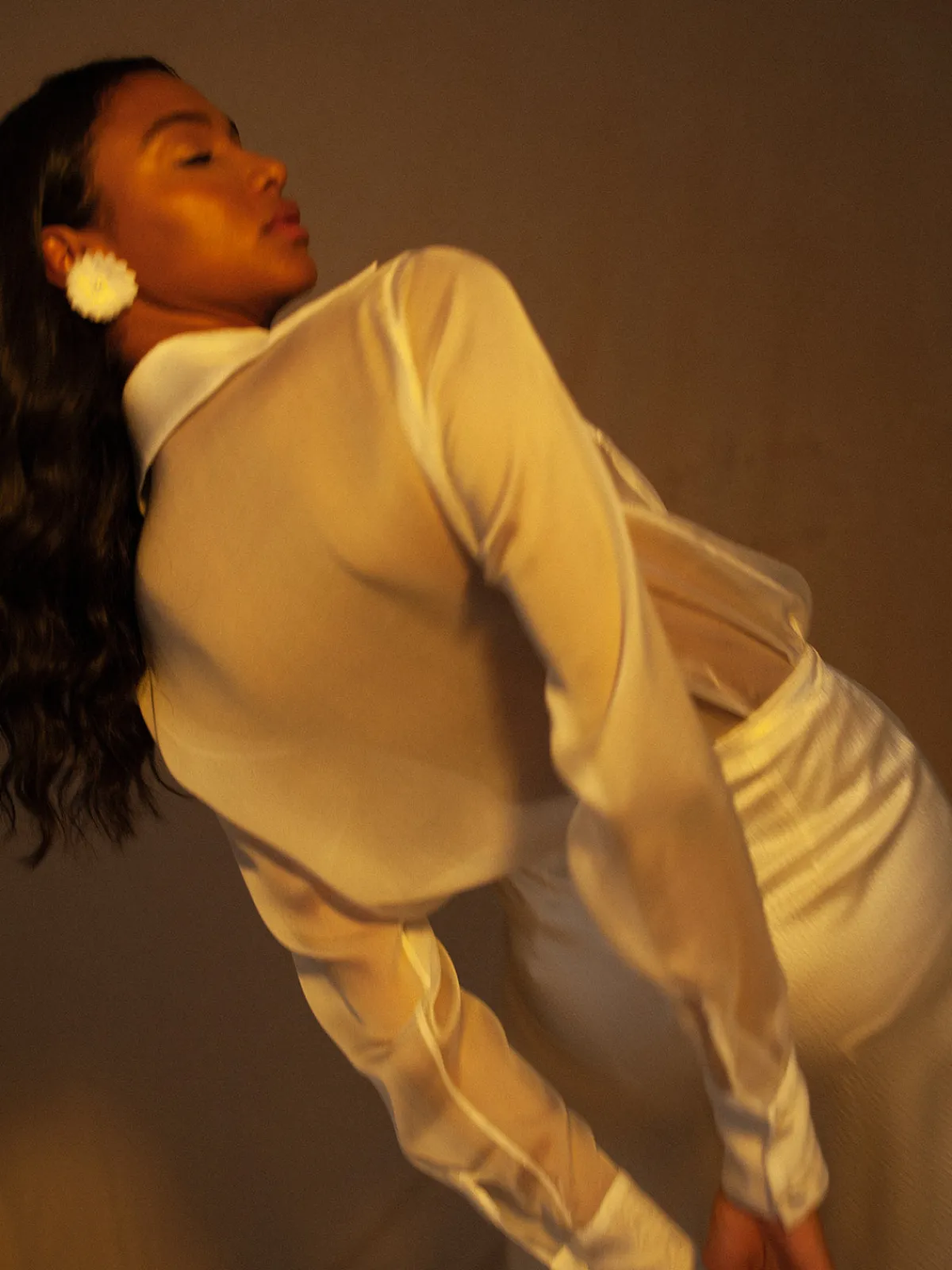 Our Francesca Miranda Hebe Blouse offers sheer transparency in a long sleeve silhouette with a collar, two patch pockets on the chest, and a button front placket. Handcrafted in Colombia by female heads of households.
