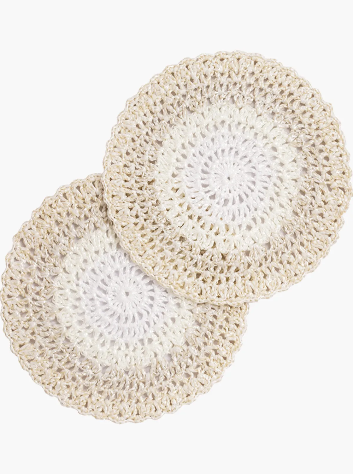 Our Francesca Miranda Hues Crochet Placemats in Natural features a round shape with a white center and contrast color around the perimeter. Sold in a set of four. Handcrafted by artisans in Colombia.