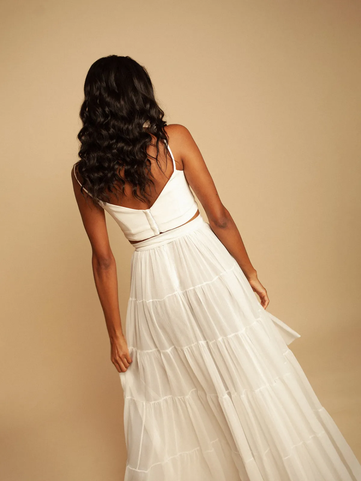 Our Francesca Miranda Parca Bralette doubles as a crop top and an undergarment in a sleeveless silhouette with spaghetti straps, a V-neckline, and a back zipper. Handcrafted in Colombia by female heads of households.