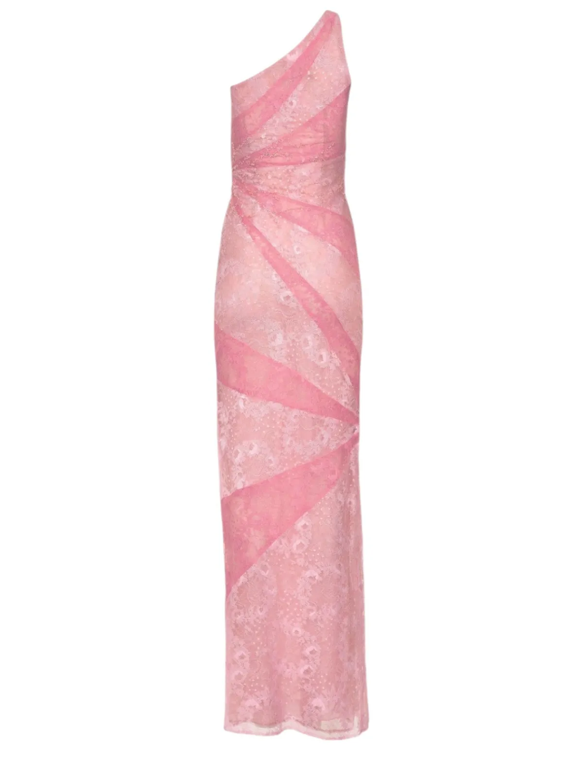Our Francesca Miranda Ramos Lace Dress is a maxi length dress with a one shoulder detail. This dress is hand-dyed and features hand-embroidered lace. Handcrafted by female heads of households in Colombia.