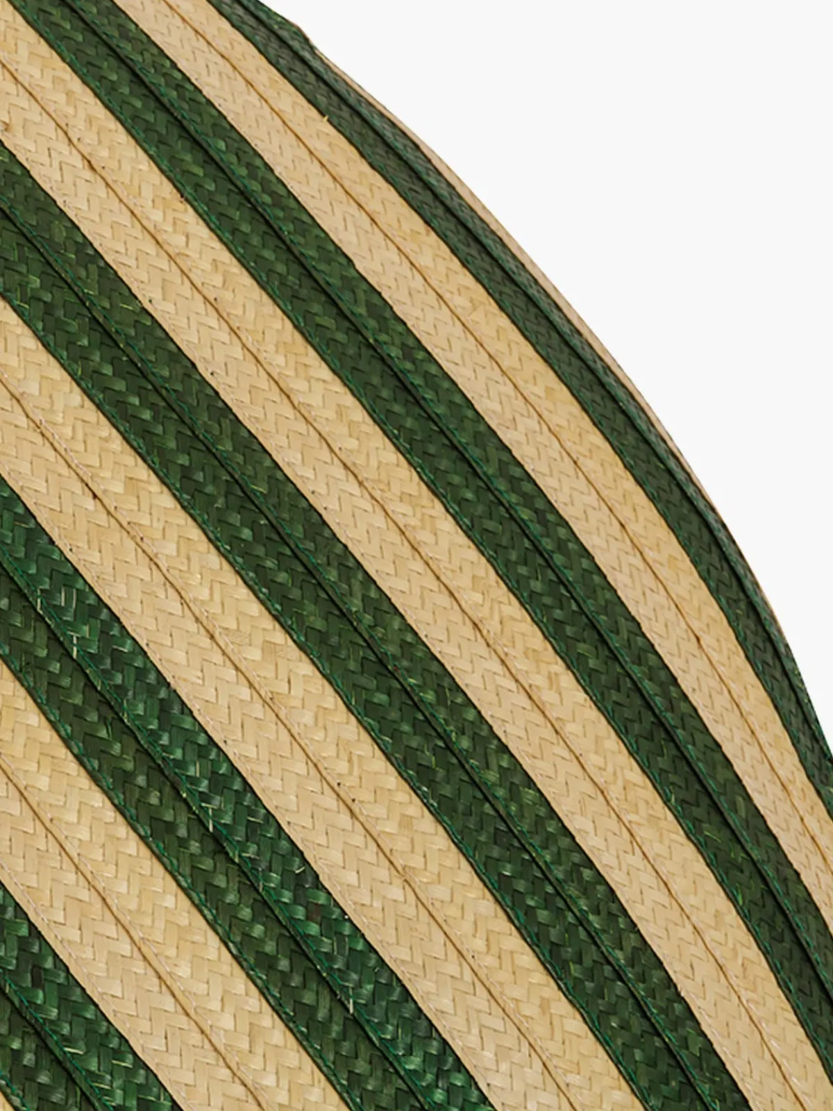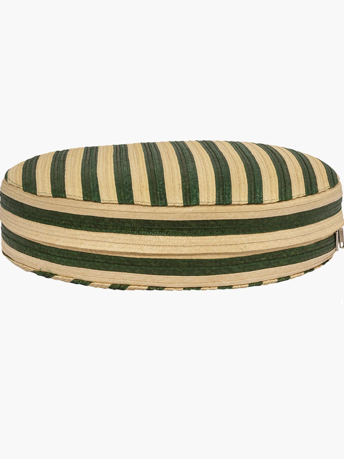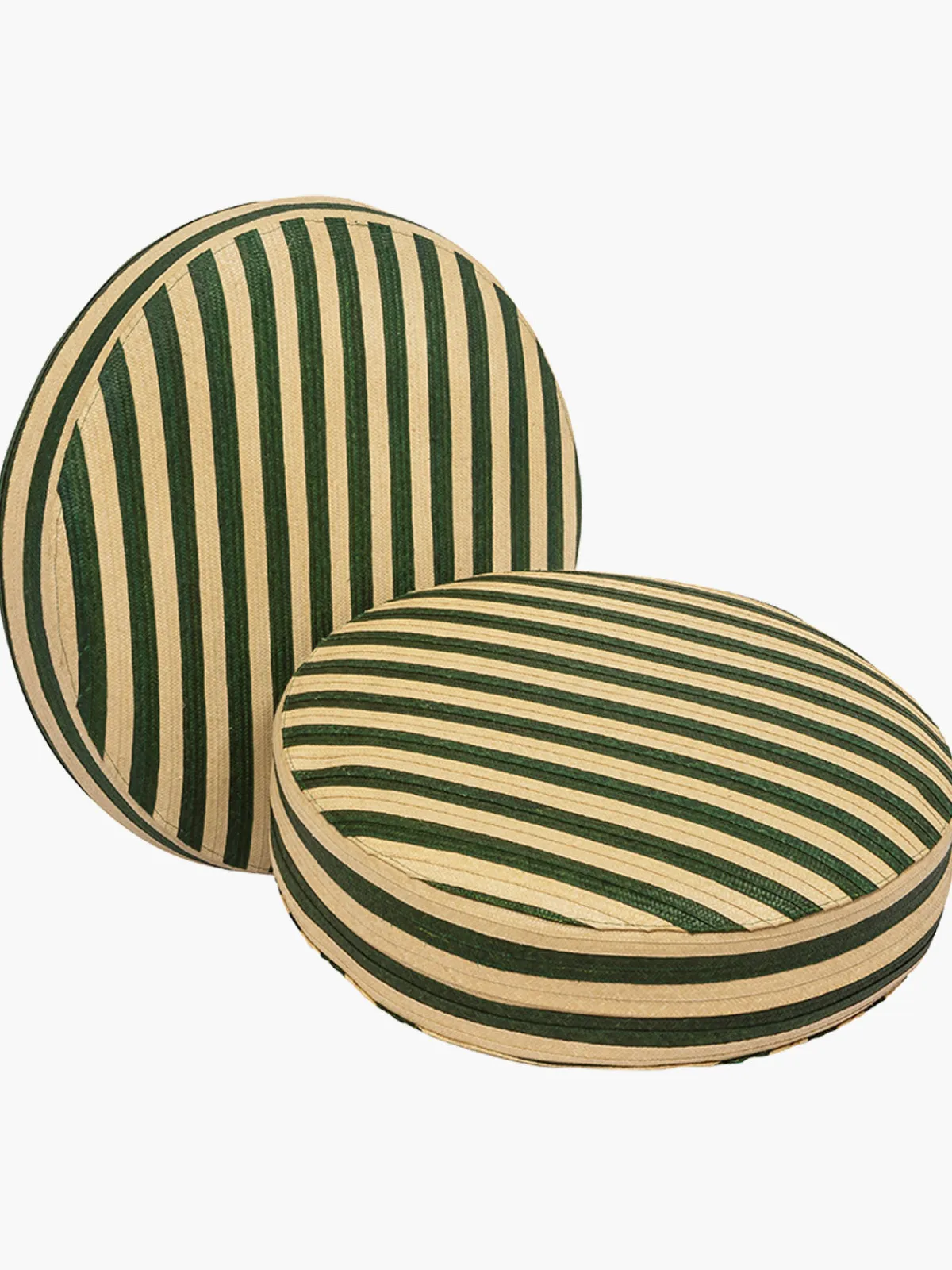 Our Francesca Miranda Raya Weave Pillow in Deep Olive boasts natural style in a round silhouette with a two-tone striped pattern and zipper closure. Handcrafted by artisans in Colombia.