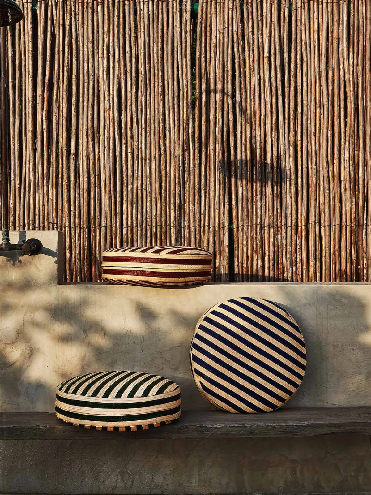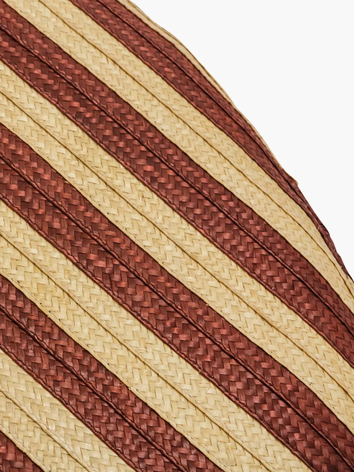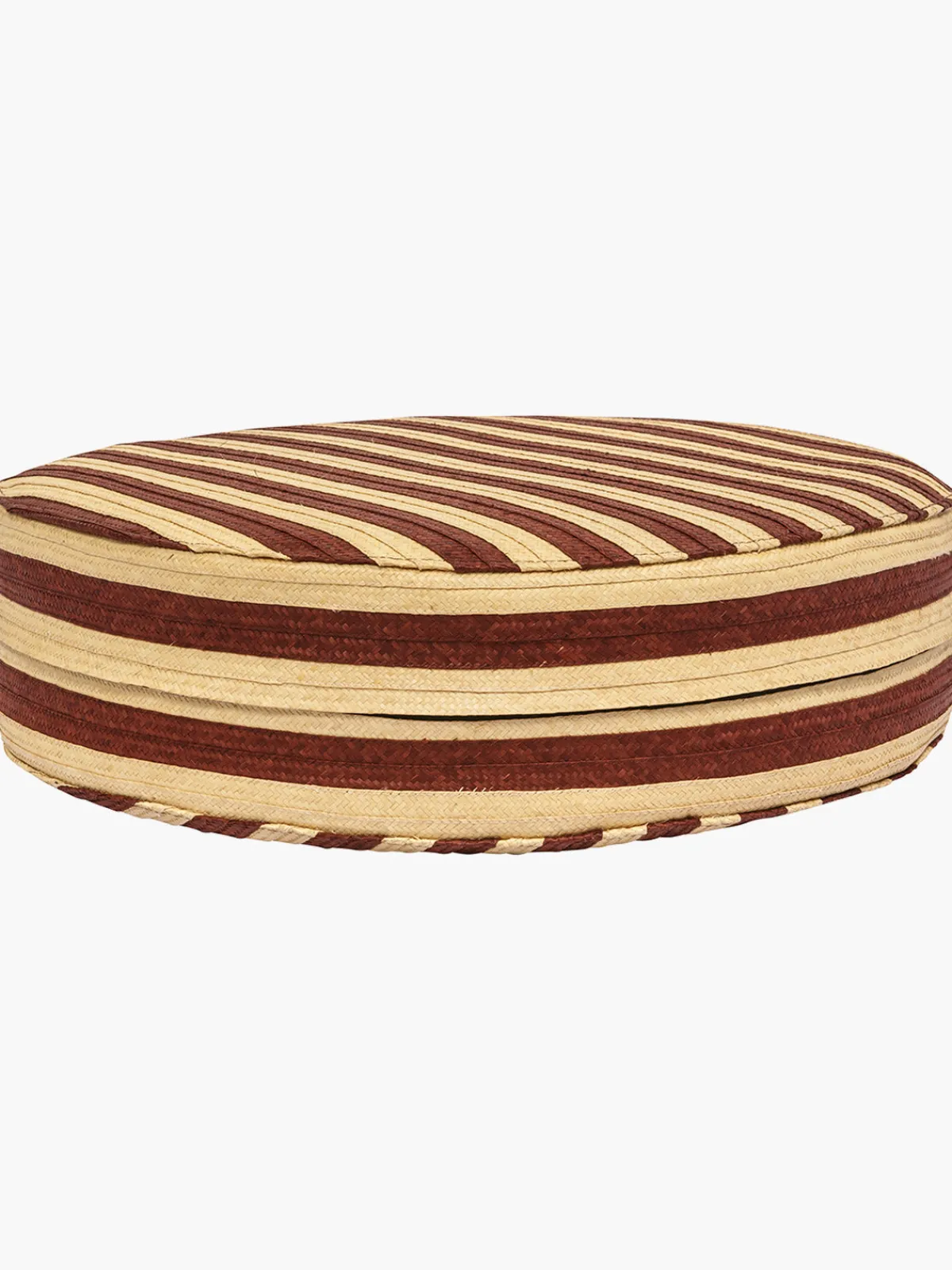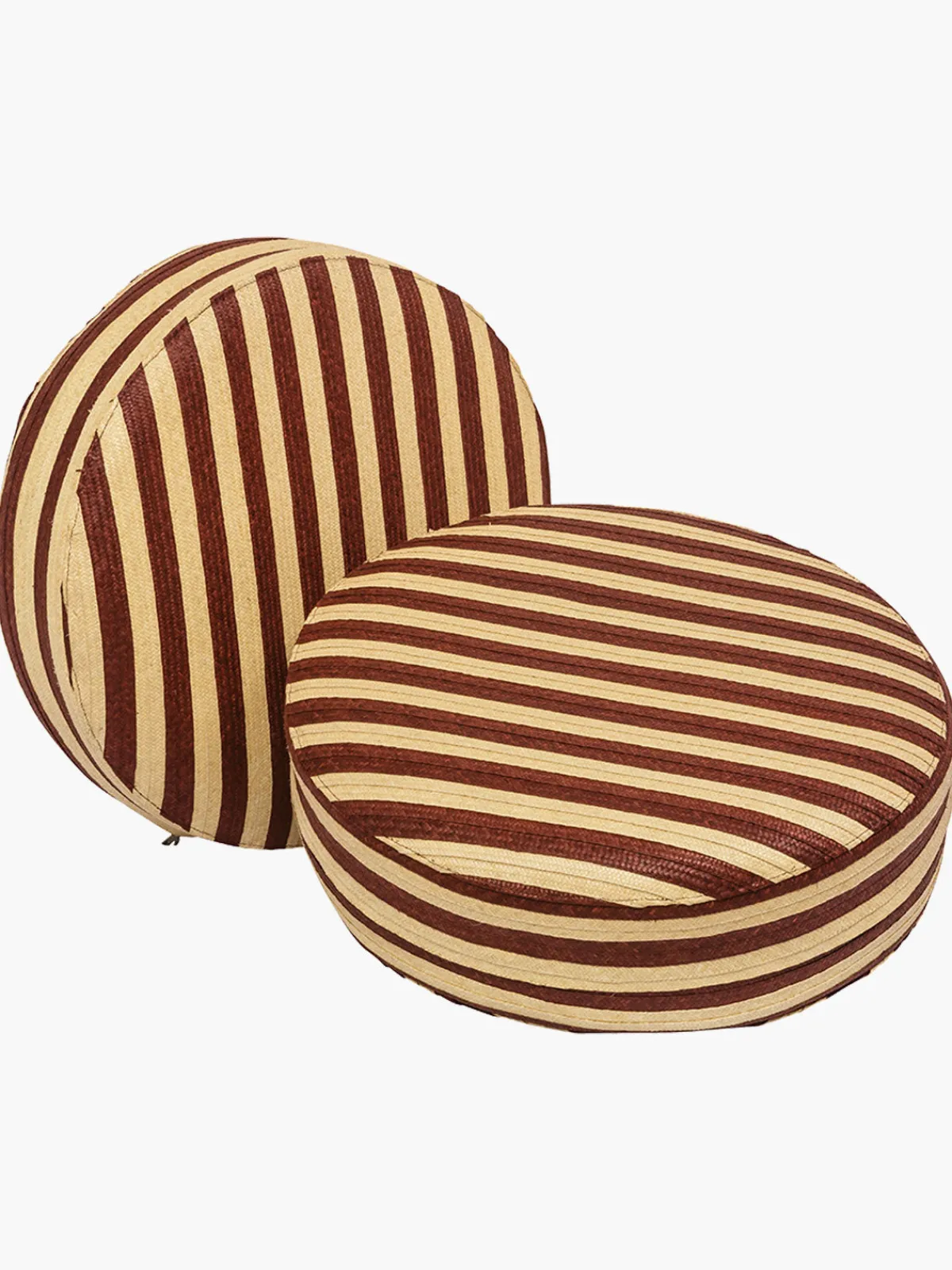 Our Francesca Miranda Raya Weave Pillow in Vino boasts natural style in a round silhouette with a two-tone striped pattern and zipper closure. Handcrafted by artisans in Colombia.