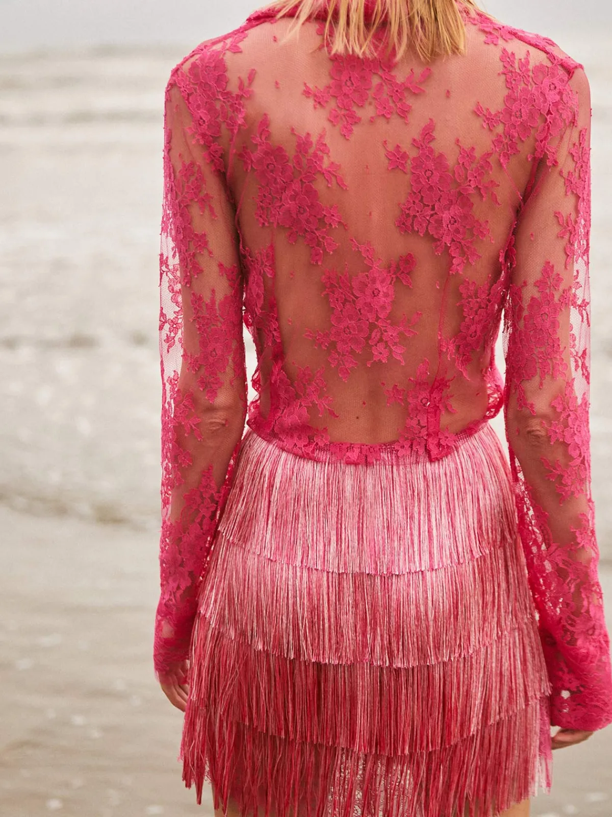 Francesca Miranda Sunrise Fringe Mini Skirt