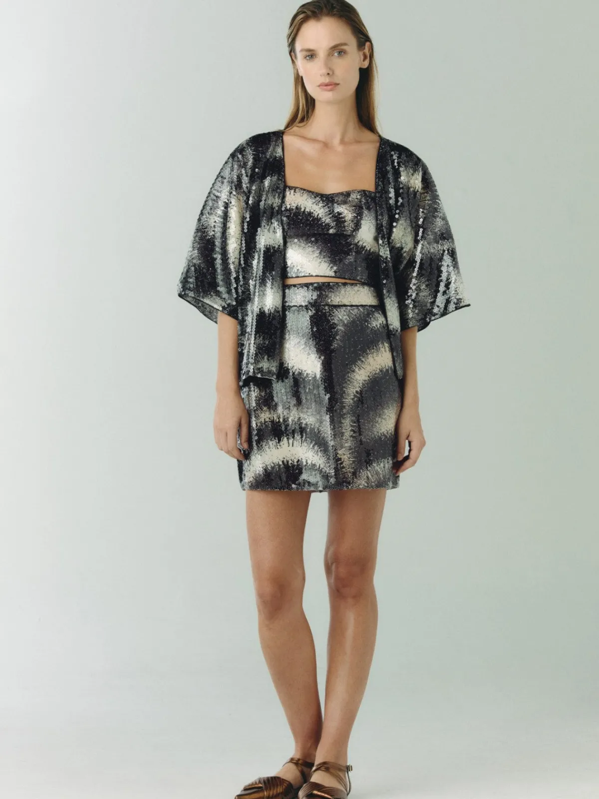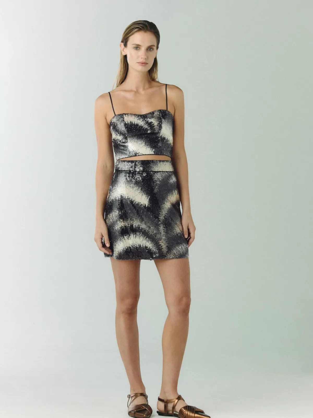 Our Juan de Dios Baracoa Sequins Crop Top in Black is a sequin crop top featuring thin adjustable straps. The top is in a brushed print with a sweetheart neckline.Handcrafted in Colombia by female heads of households.