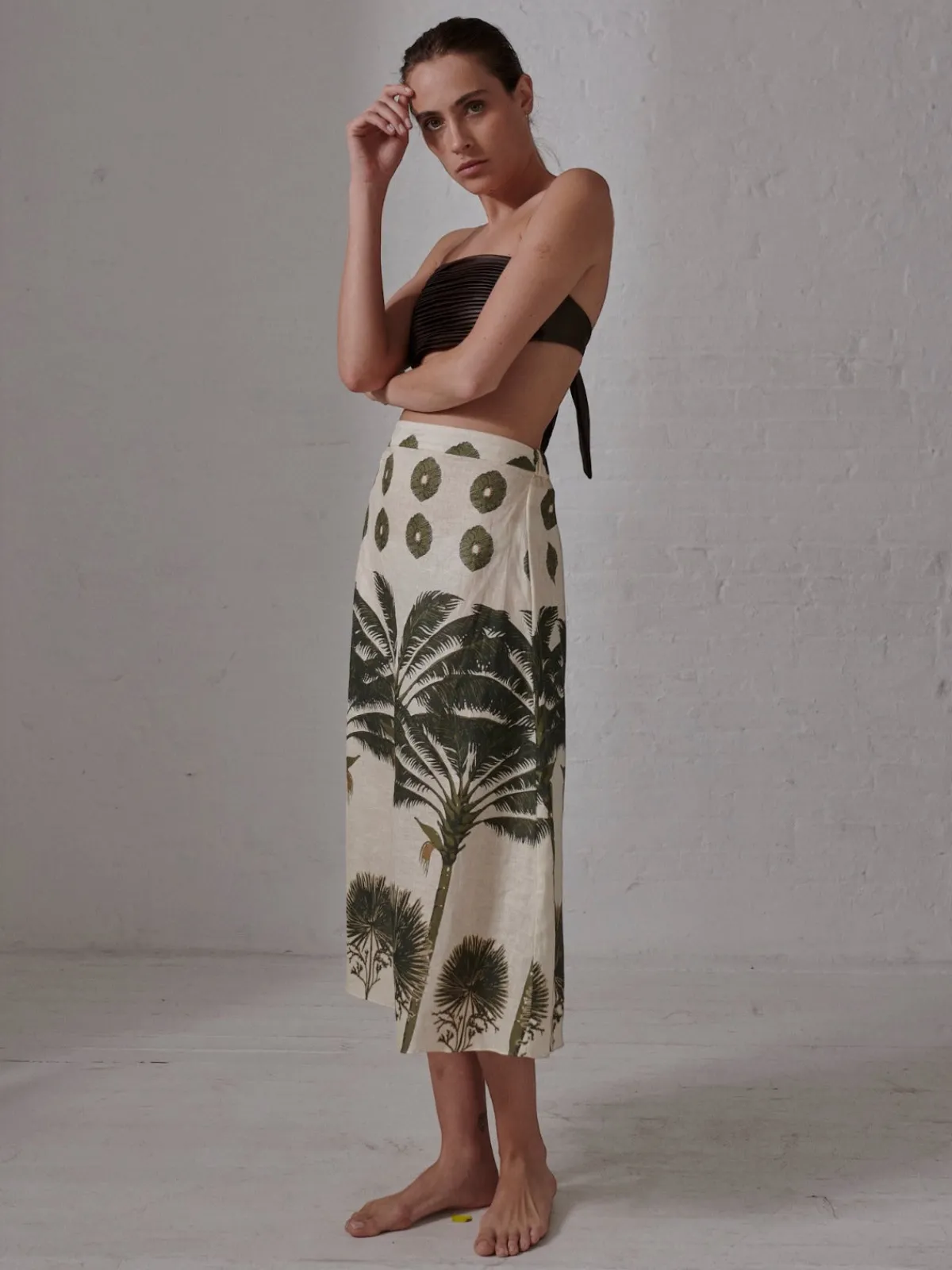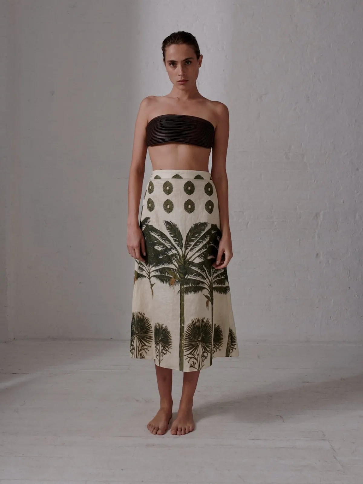 Pull-on style”}’>Our Juan de DiosBeatrice Skirt in Cream Palms is a midi length skirt that is pull on style. Pair with a bikini top for the ultimate vacation look.Handcrafted in Colombia by female heads of households.