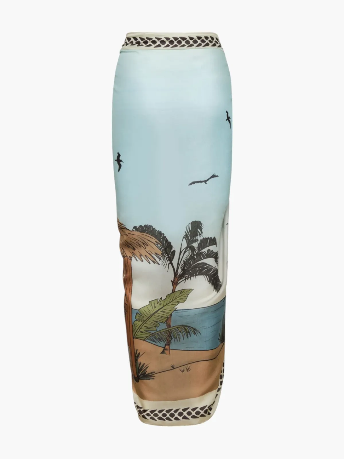 Our Juan de Dios De la Falaise Cotton Silk Sarong in Sky Blue Pacific Shack boasts a versatile silhouette and an adjustable design that you can tie in the front or on the side. Handcrafted in Colombia by female heads of household.