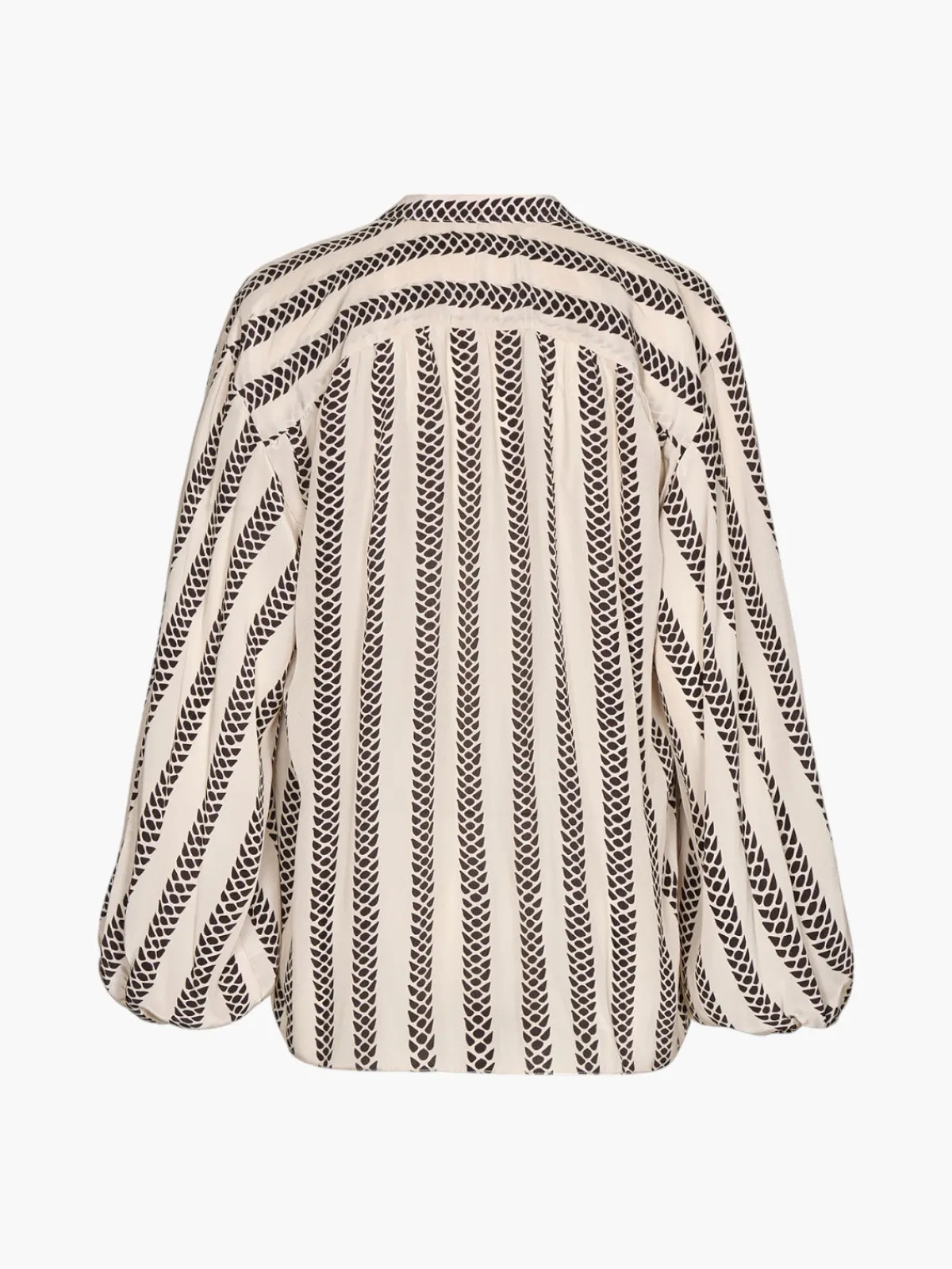 Front buttons”}’>Our Juan de DiosDon Simon Shirt in Beige Black Snake features balloon sleeves and a feminine open neckline with front buttons.Handcrafted in Colombia by female heads of households.
