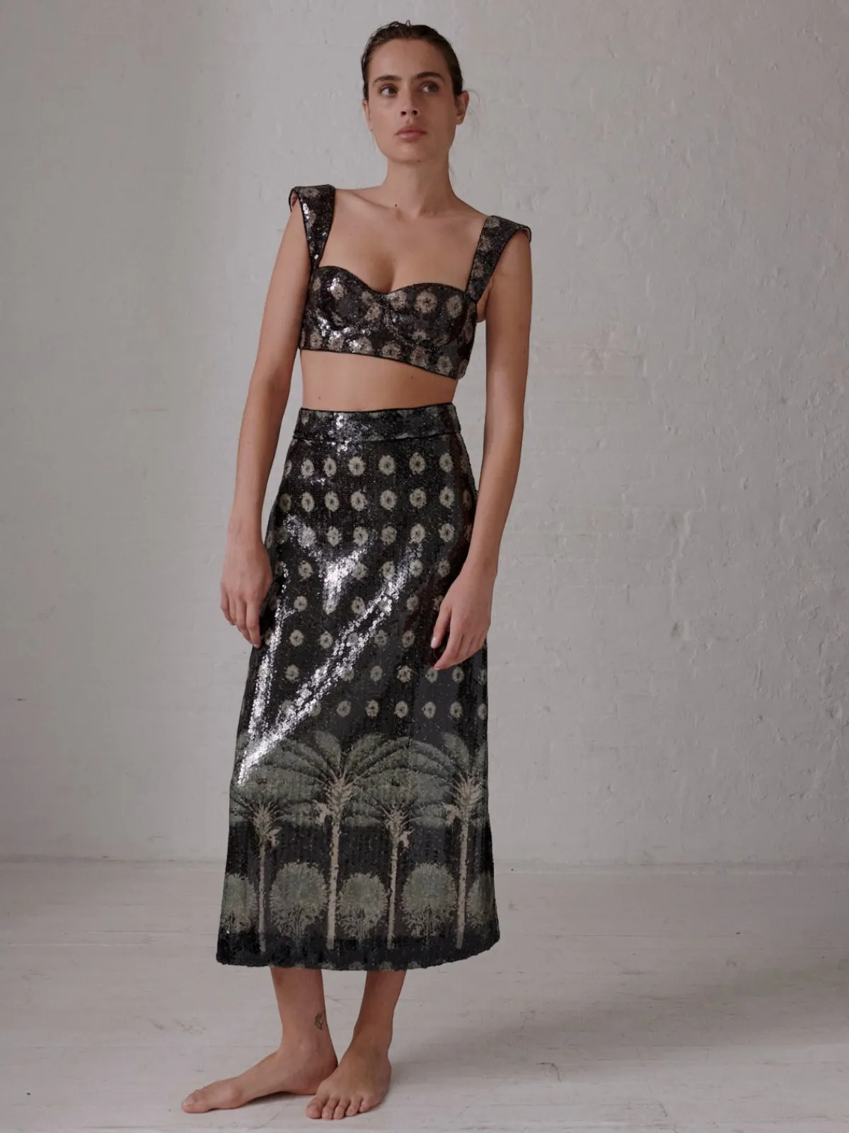 <span data-sheets-userformat='{"2":14845,"3":{"1":0,"3":1},"5":{"1":[{"1":2,"2":0,"5":{"1":2,"2":0}},{"1":0,"2":0,"3":3},{"1":1,"2":0,"4":1}]},"6":{"1":[{"1":2,"2":0,"5":{"1":2,"2":0}},{"1":0,"2":0,"3":3},{"1":1,"2":0,"4":1}]},"7":{"1":[{"1":2,"2":0,"5":{"1":2,"2":0}},{"1":0,"2":0,"3":3},{"1":1,"2":0,"4":1}]},"8":{"1":[{"1":2,"2":0,"5":{"1":2,"2":0}},{"1":0,"2":0,"3":3},{"1":1,"2":0,"4":1}]},"9":0,"10":1,"11":4,"14":{"1":3,"3":1},"15":"Arial","16":12}' data-sheets-value='{"1":2,"2":"Inpired in the prodigious extravagances of the last maharajas, the El Carmen Sequin Skirt features dazzling patterned sequins combined with an impecable fit. Pair with the Delirio Top skirt to create the ultimate evening look.