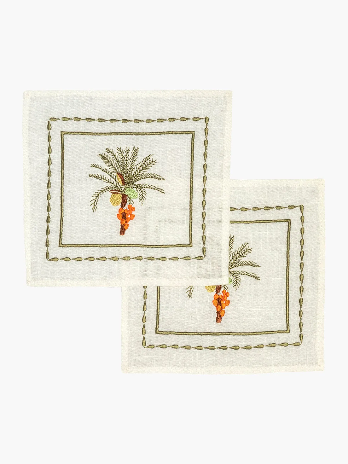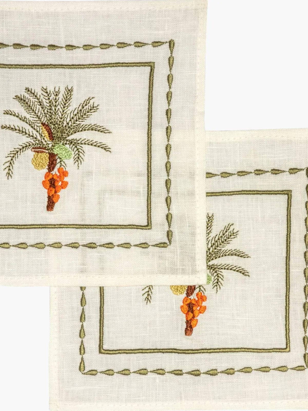 OurJuan De Dios Embroidered Cocktail Napkins in Palm Tree are inspired by Chontaduros, an exotic palm fruit native to Colombia’s Pacific Coast. These beautifully embroidered napkins come in a set of 4 and provide a perfectly subtle tropical touch to any table. Handcraftedby female heads of households in Colombia.
