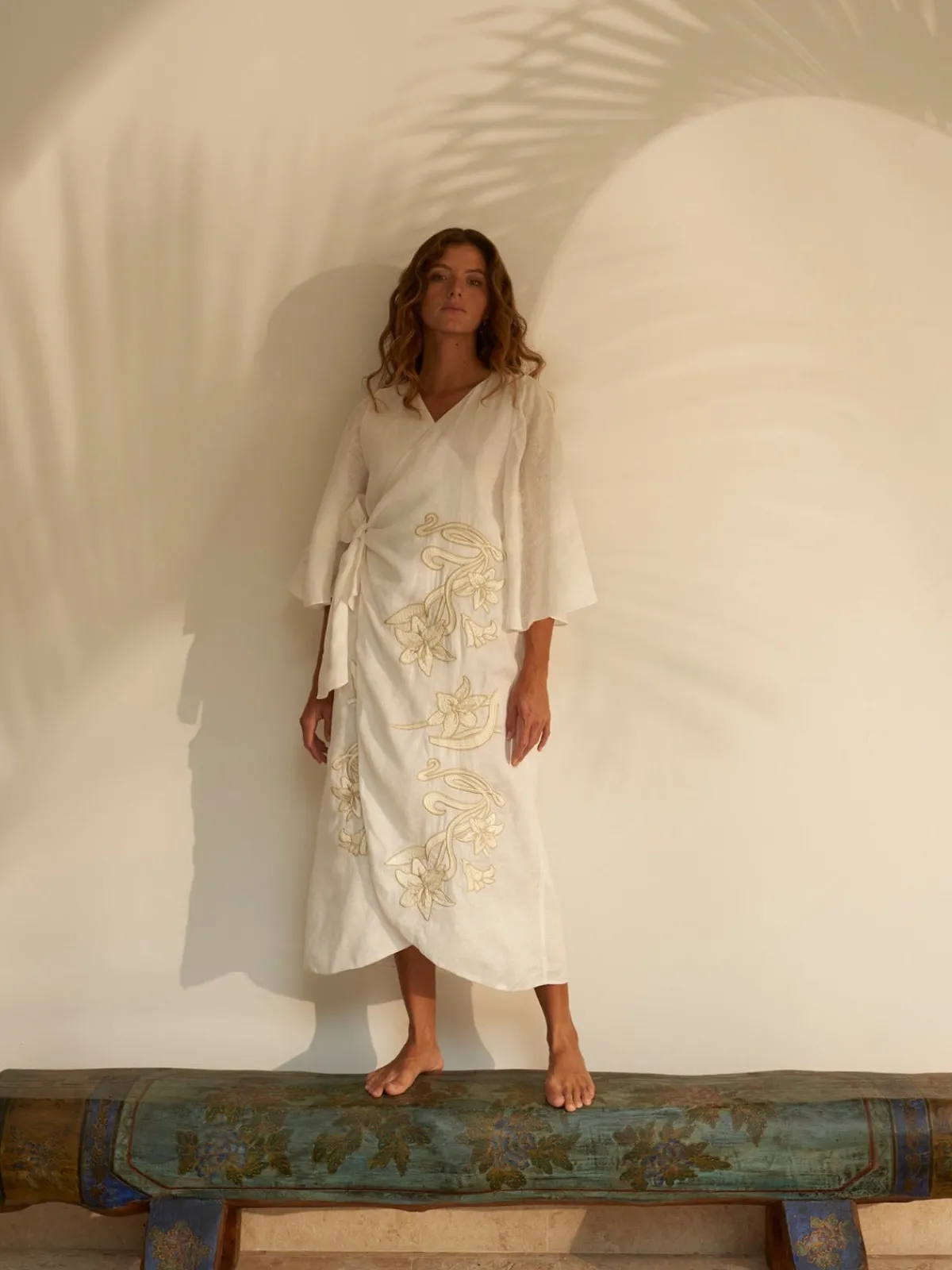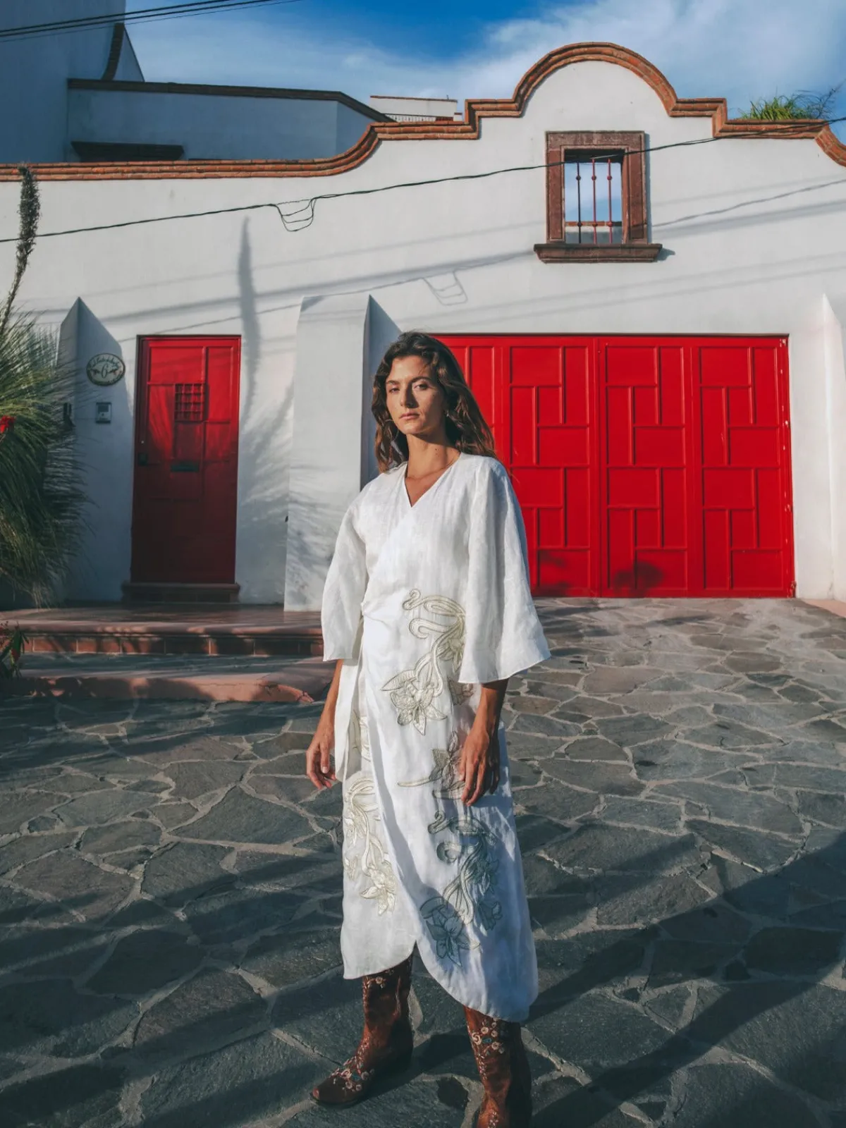Our Juan de Dios Frida Linen Dress in White features a flattering and relaxed cut and incredibly detailed embroidery.Handcrafted in Colombia by female heads of households.