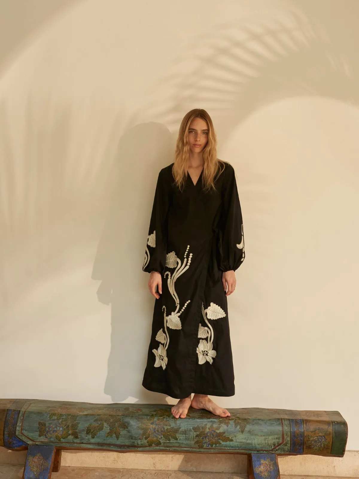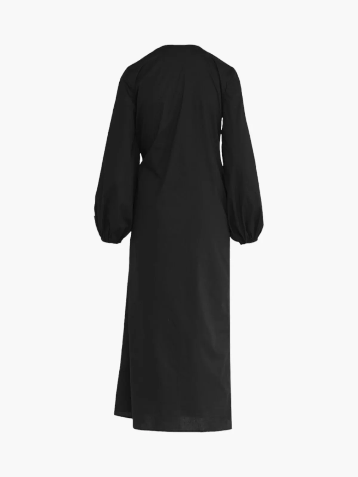 Our Juan de Dios Hojarasca Tunic Dress in Black is a wrap around tunic dress with puffy sleeves. Handcrafted in Colombia by female heads of households.