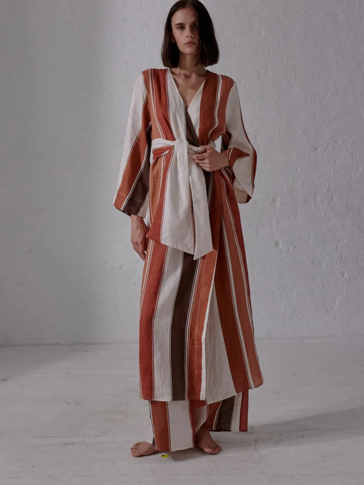 Our Juan de Dios Joaquina Linen Kaftan in Terra Stirpes features a classic Kaftan silhouette with a removable belt.Handcrafted in Colombia by female heads of households.
