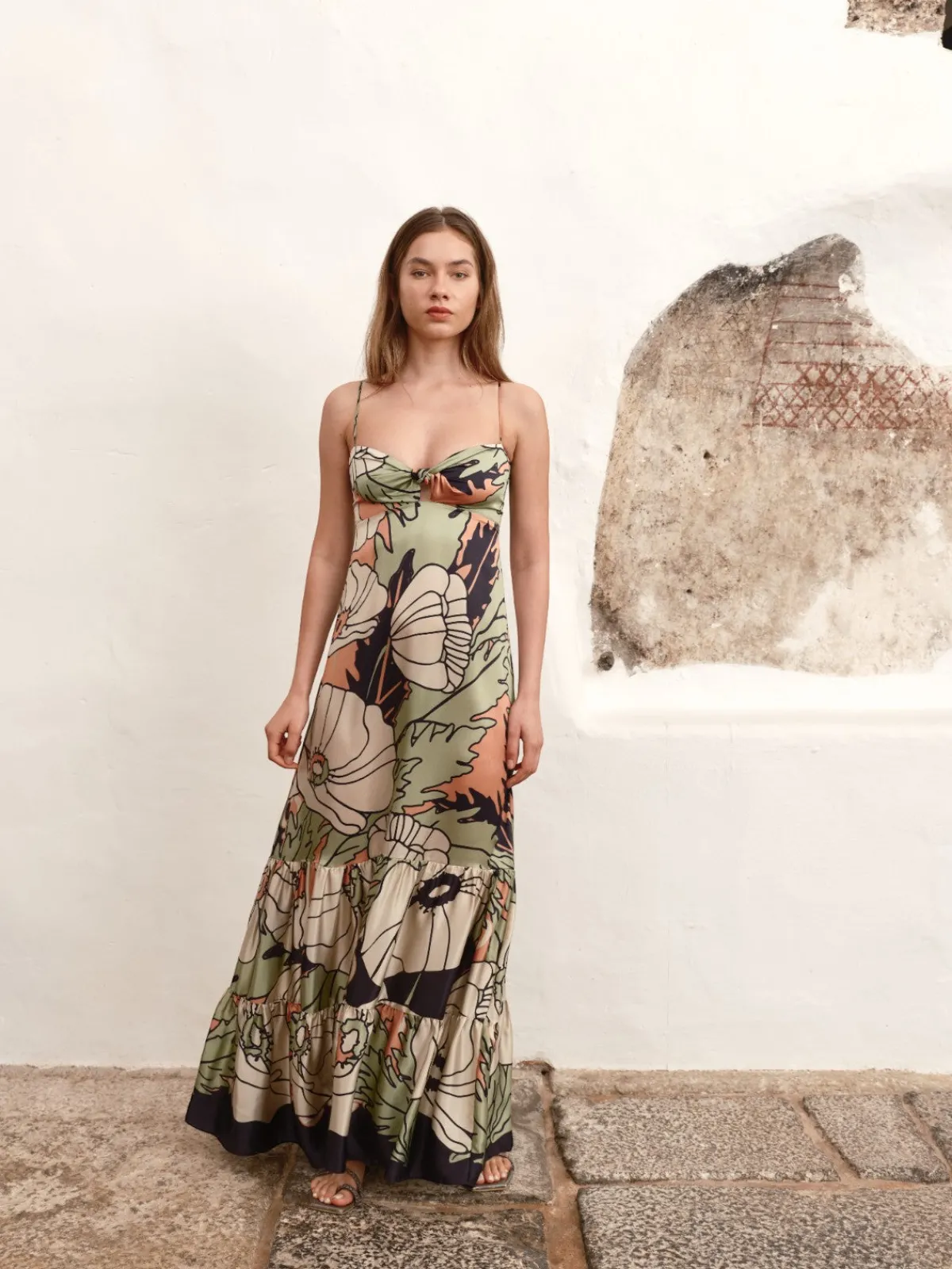 Our Juan de Dios Julieta Maxi Dress in Sage Gladiolos Garden is a maxi dress with a relaxed fit that features delicate shoulder straps and an invisible zipper at the back.Handcrafted by female heads of households in Colombia.