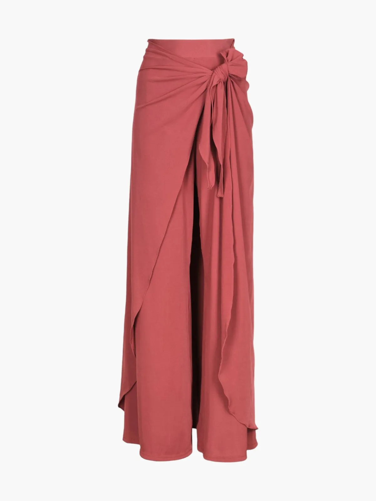 Our Juan de Dios La Bamba Jersey Pants in Terra are a flowy pant with ruching detail and a front tie belt detail. Zipper on the side. Handcrafted in Colombia by female heads of households.