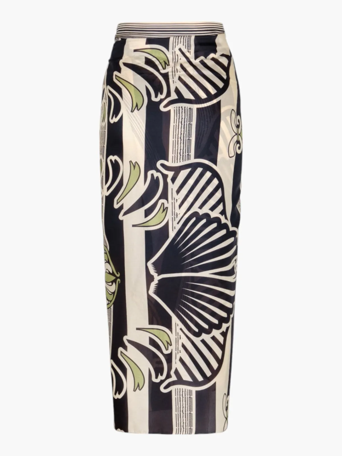 Our Juan de Dios Mapara Cotton Silk Skirt in Navy Ornament Stripes features a simple wrap silhouette with a tie that knots at the waist. Handcrafted in Colombia by female heads of households.
