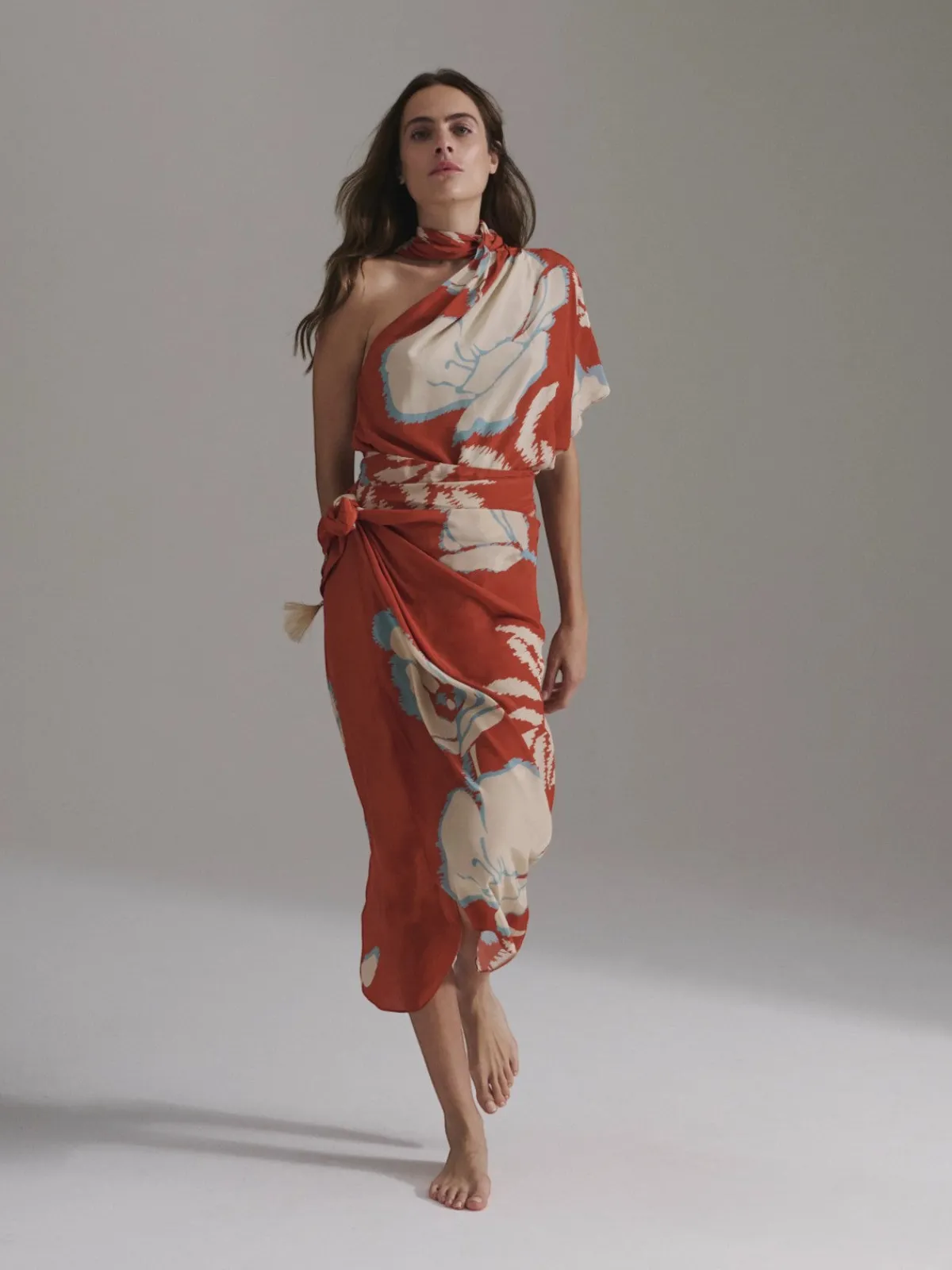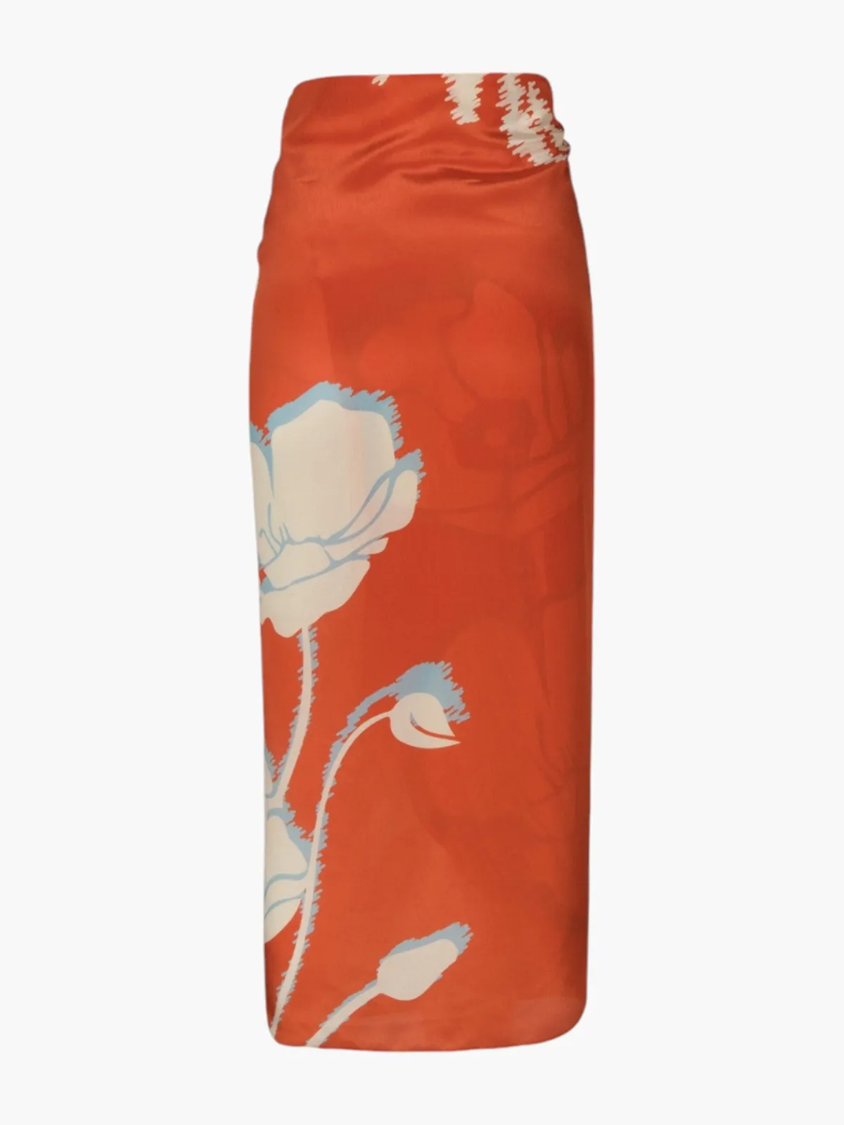 Our Juan de Dios Mapara Crepe Chine Skirt in Orange Gladiolos features a simple wrap silhouette with a tie that knots at the waist. Handcrafted in Colombia by female heads of households.