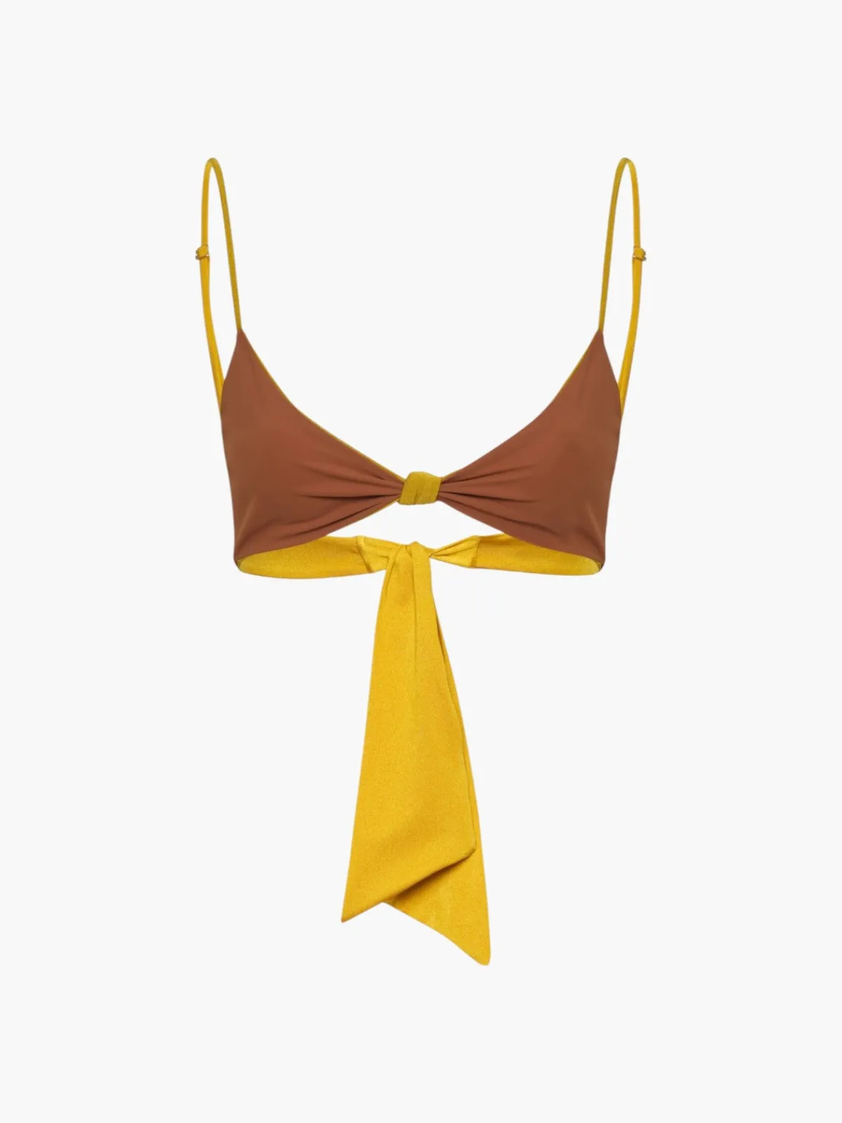 Our Juan de Dios Pacifico Top in Yellow/Western features a delicate twisted knot on the front and adjustable straps for an impeccable fit. The top is reversible with UV 50 protection. Handcrafted in Colombia by female heads of households.