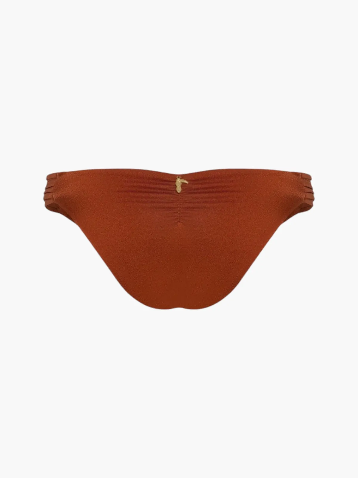 Our Juan de Dios Potosi Bottom in Dattero/Namibia features a low rise silhouette with ruched accents on each side and a gathered accent at the back. Handcrafted in Colombia by female heads of households.