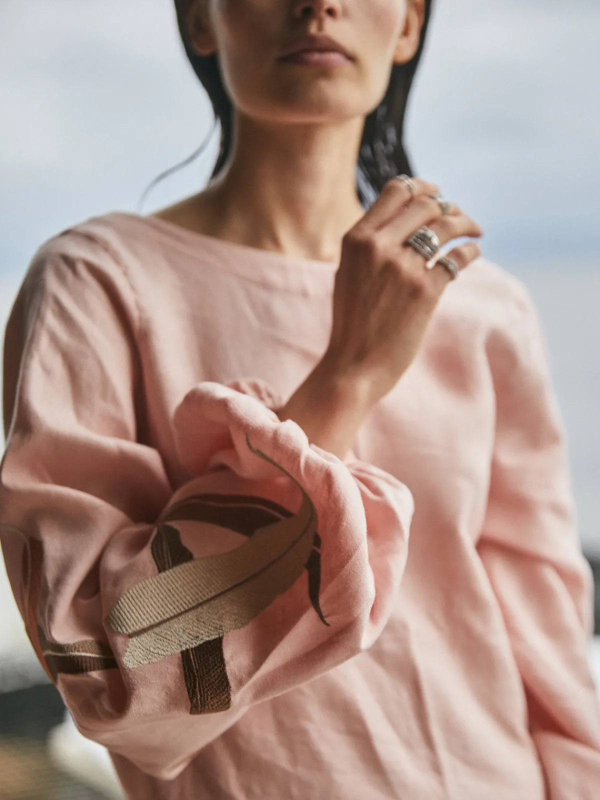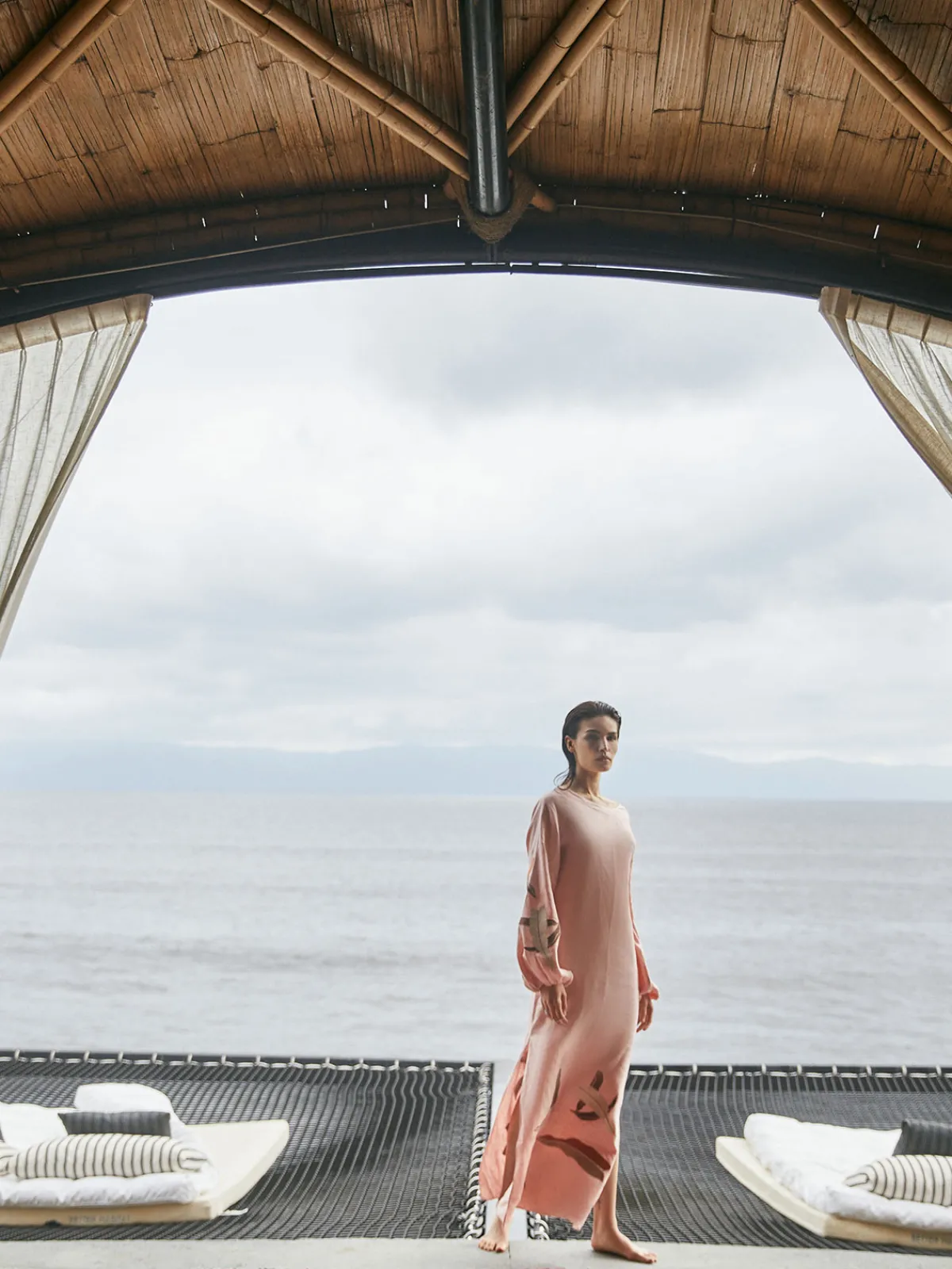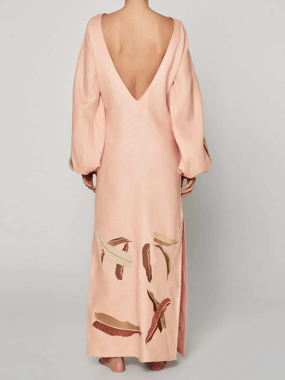 Our Juan de Dios Saman Dress features a maxi silhouette with long puffed sleeves, a round neckline, and embroidered accents at the sleeves and hem. It’s detailed with a slit hem and a zipper closure on the side. Crafted by artisans in Colombia.
