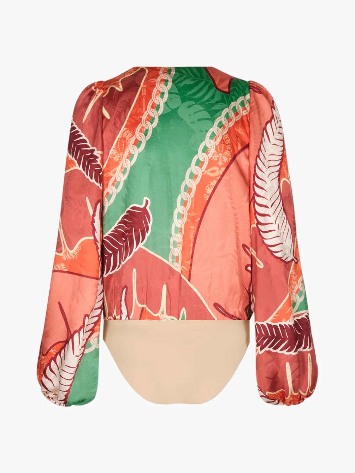 <span data-sheets-value="{u0026quot;1u0026quot;:2,u0026quot;2u0026quot;:u0026quot;The Sambale Jacquard Bodysuit is a feminine silhouette tailored in 100% silk. Featuring this season's show-stopping Green Cream Palm Leafs print, this lustrous style is ideal to be dressed up or down.