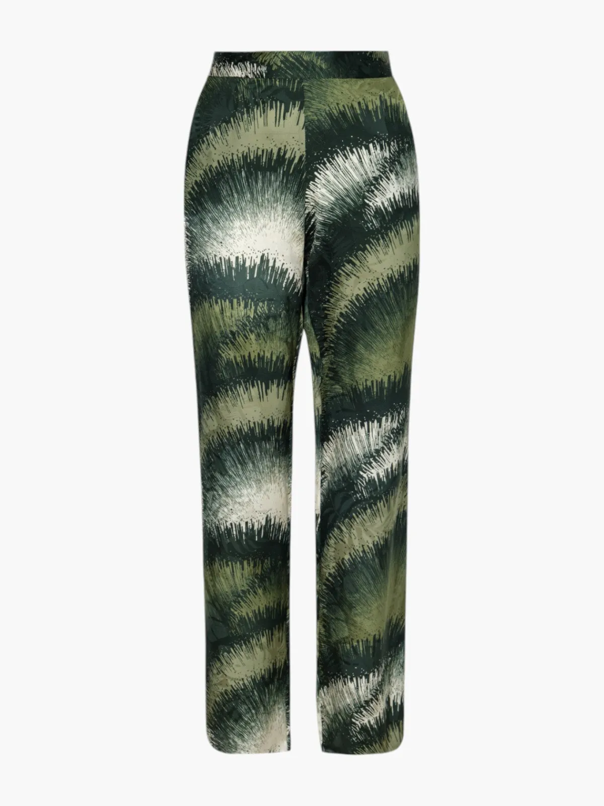 Our Juan de Dios Santo Tomas Silk Jacquard Pants in Green Brushed is a high waisted pant with wide leg silhouette. This pant features side pockets with zipper closure on the side. Handcrafted in Colombia by female heads of households.