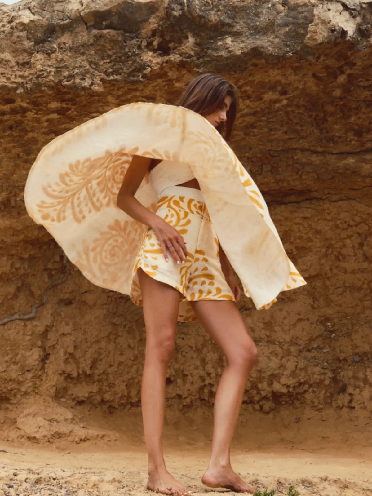 Our Juan de Dios Tomaso Shorts in Ecru Yellow Arabesque are designed with a masculine focus on casual elegance. Match them with the Tomaso Shirt to create a set. Handcrafted in Colombia by female heads of households.