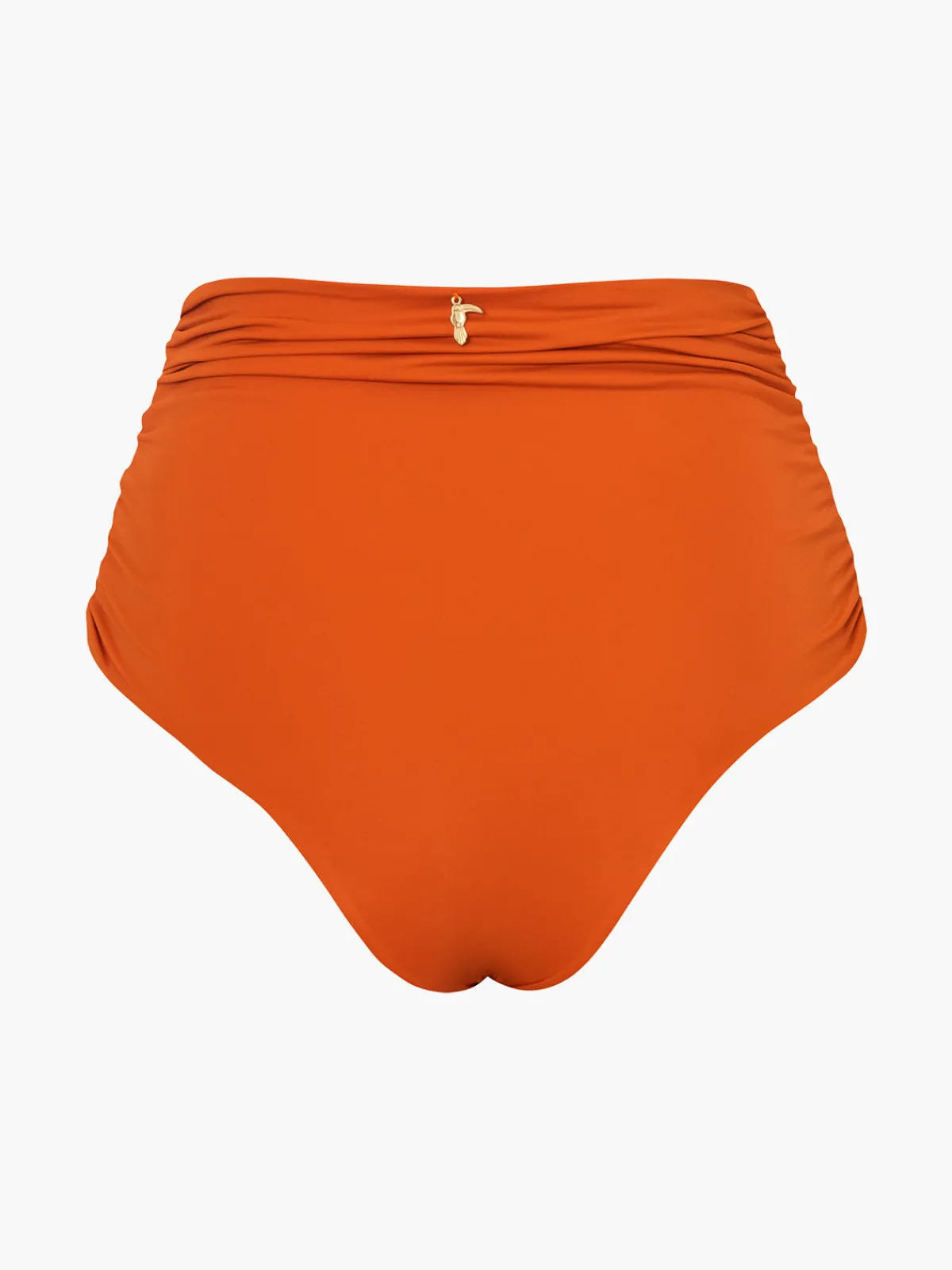 Our Juan de Dios Victoria Vintage Bottom Embroidered in Orange boasts a high waist silhouette and offers moderate coverage in the back. Handcrafted in Colombia by female heads of households.