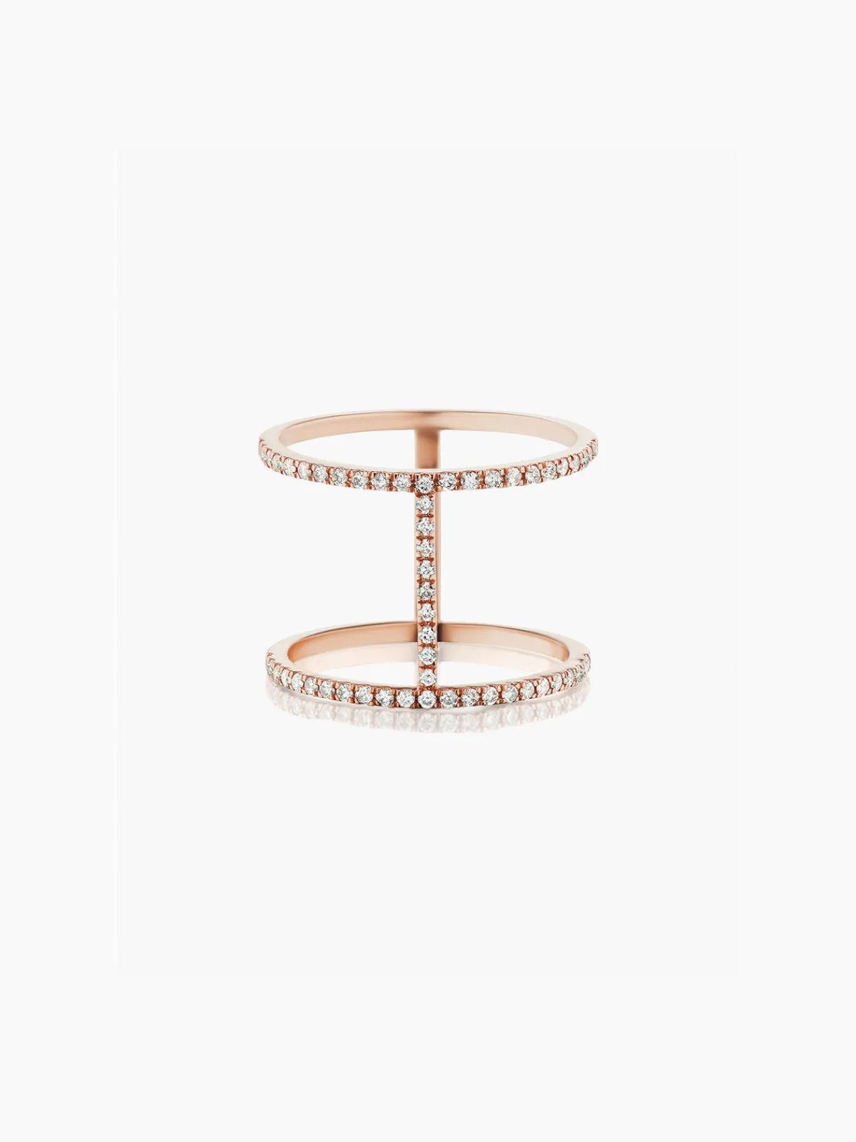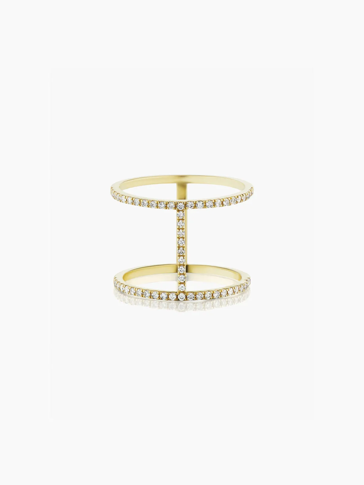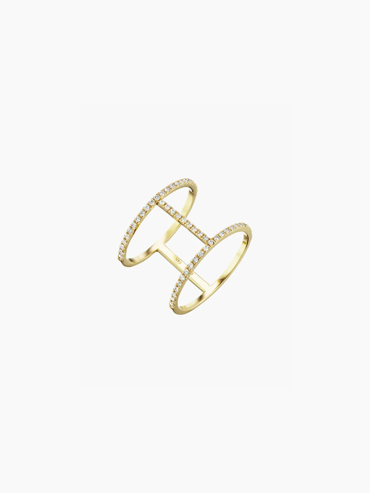 Our KBH Jewels Diamond KBH Jewels Ring features two slender diamonds bands with two vertical diamond connectors, designed to sparkle from every angle. Handcrafted by artisans in NYC.