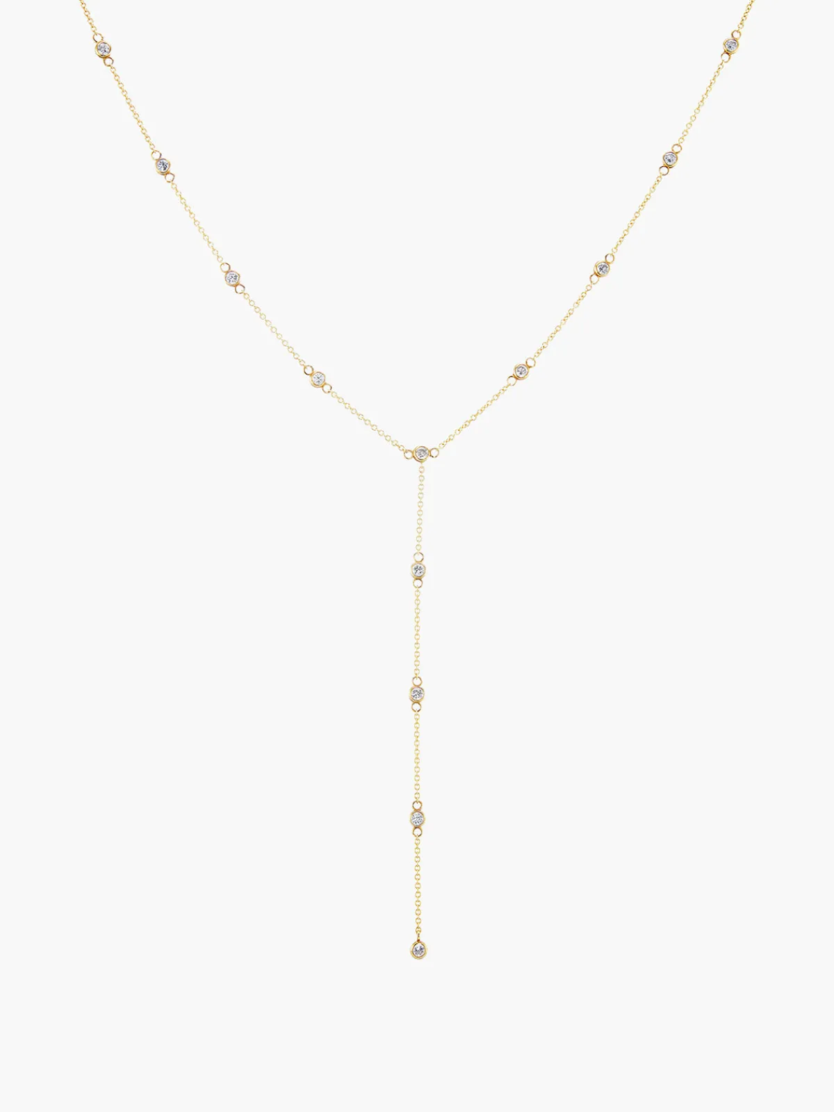 Our KBH Jewels Lariat Classic necklace features a delicate chain with thirteen diamond accents and a lobster clasp closure. Handcrafted by artisans in NYC.
