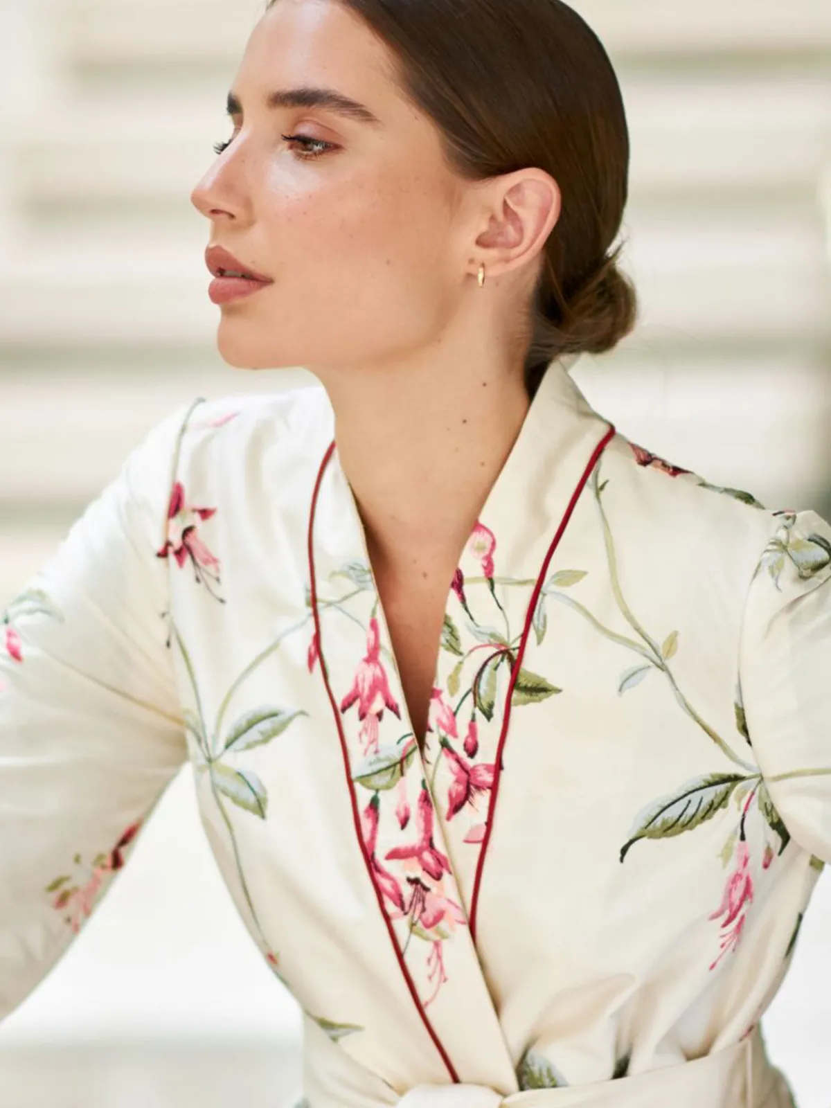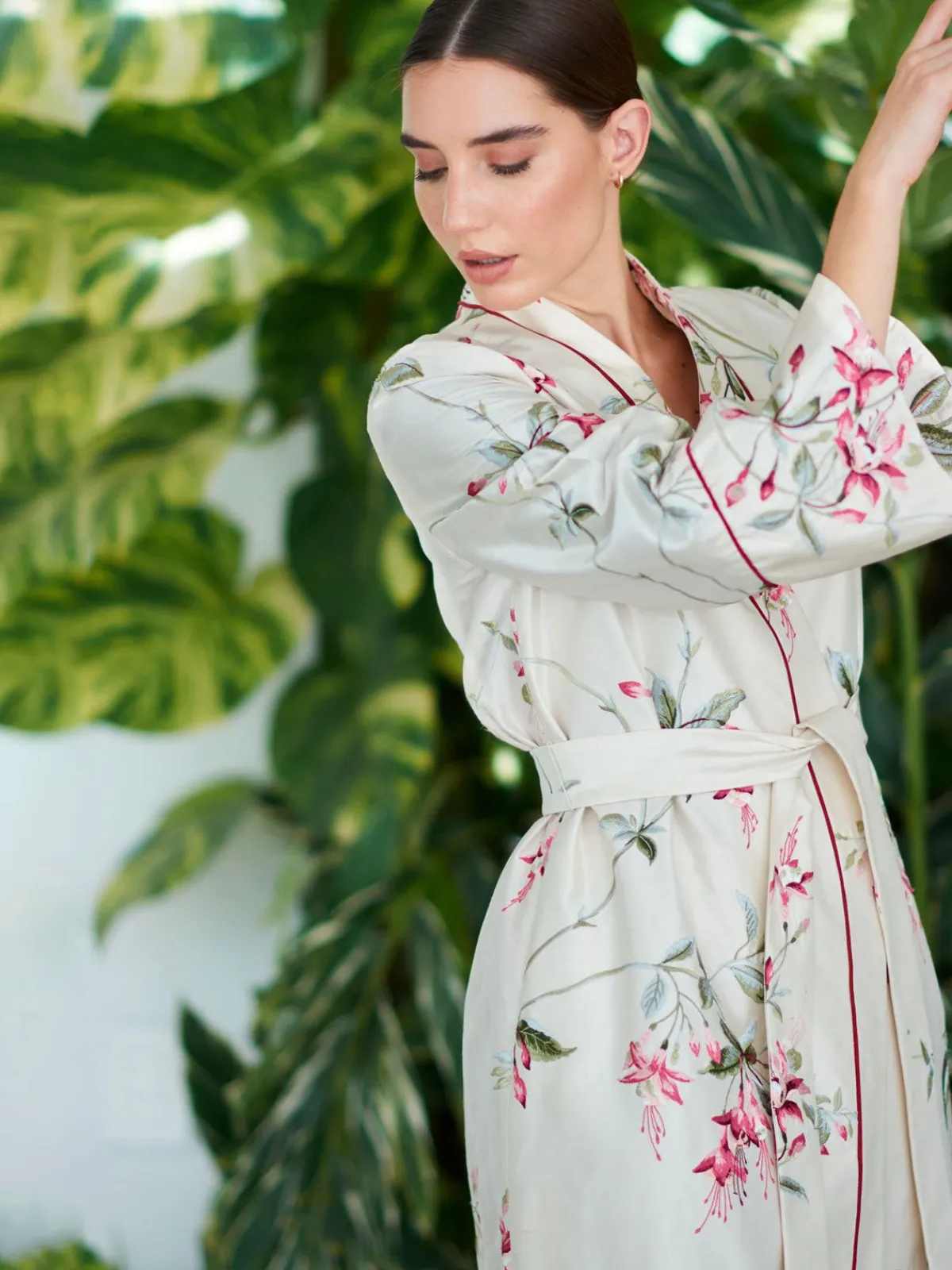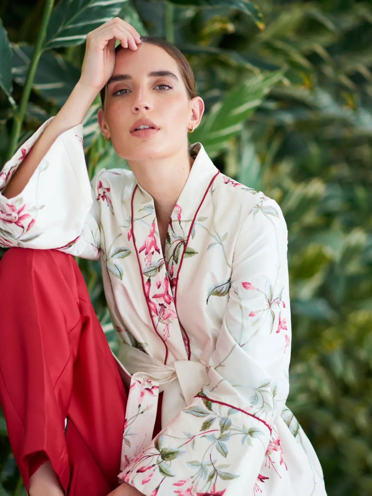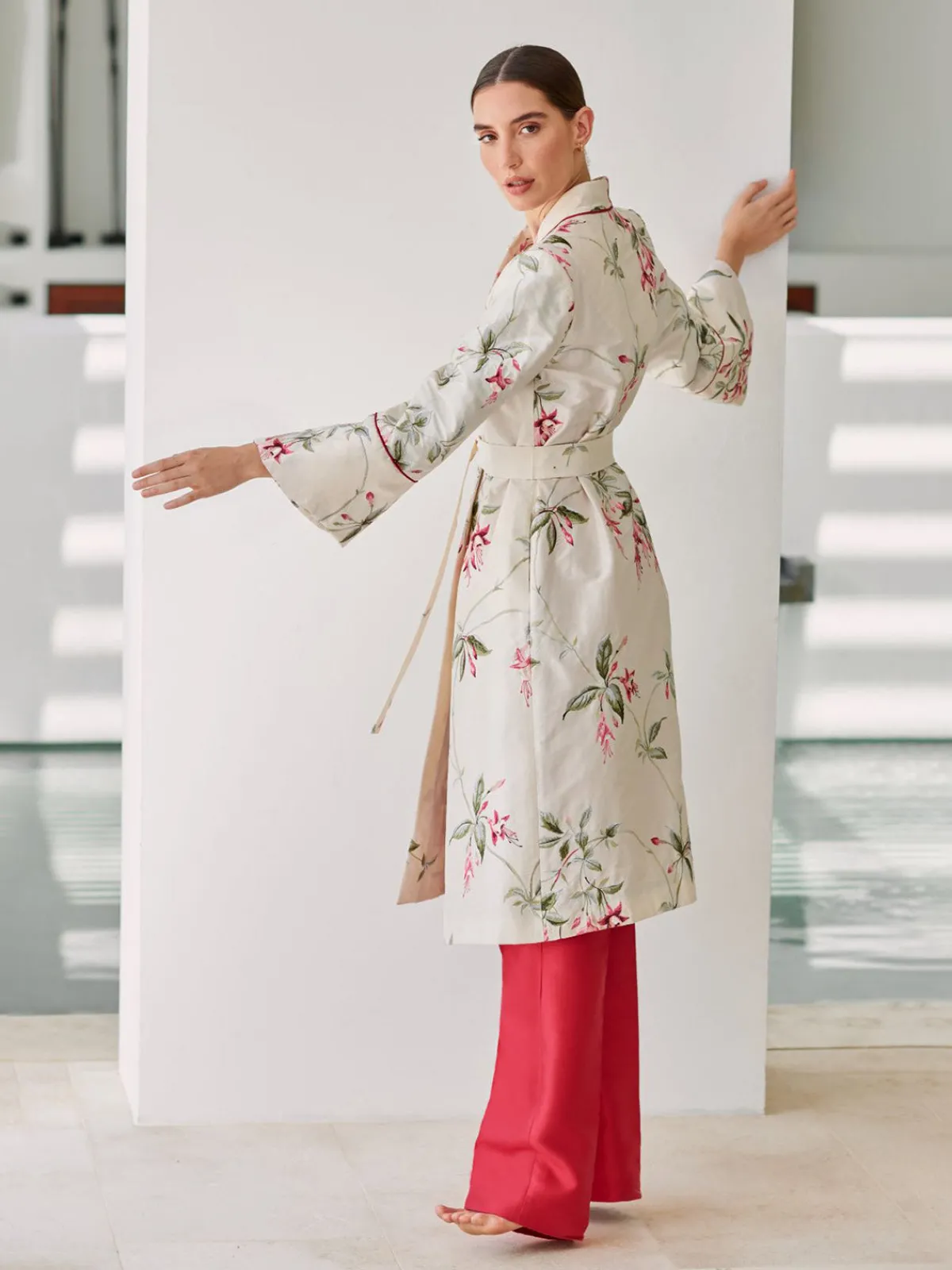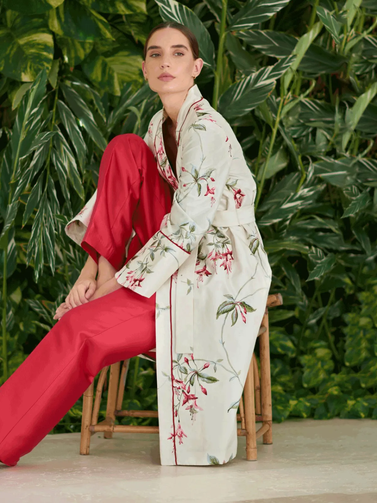 Our Maison Alma Wrap Coat in Campanas Embroidery features long sleeves with flared cuffs, a V-neckline, a removable tie belt, and side pockets. Detailed with a notch collar and a hidden breast pocket, this piece is entirely handcrafted by master tailors in Colombia.