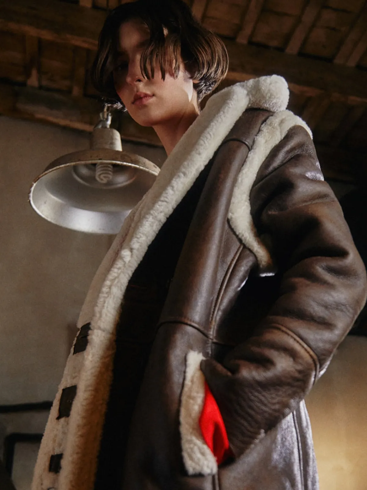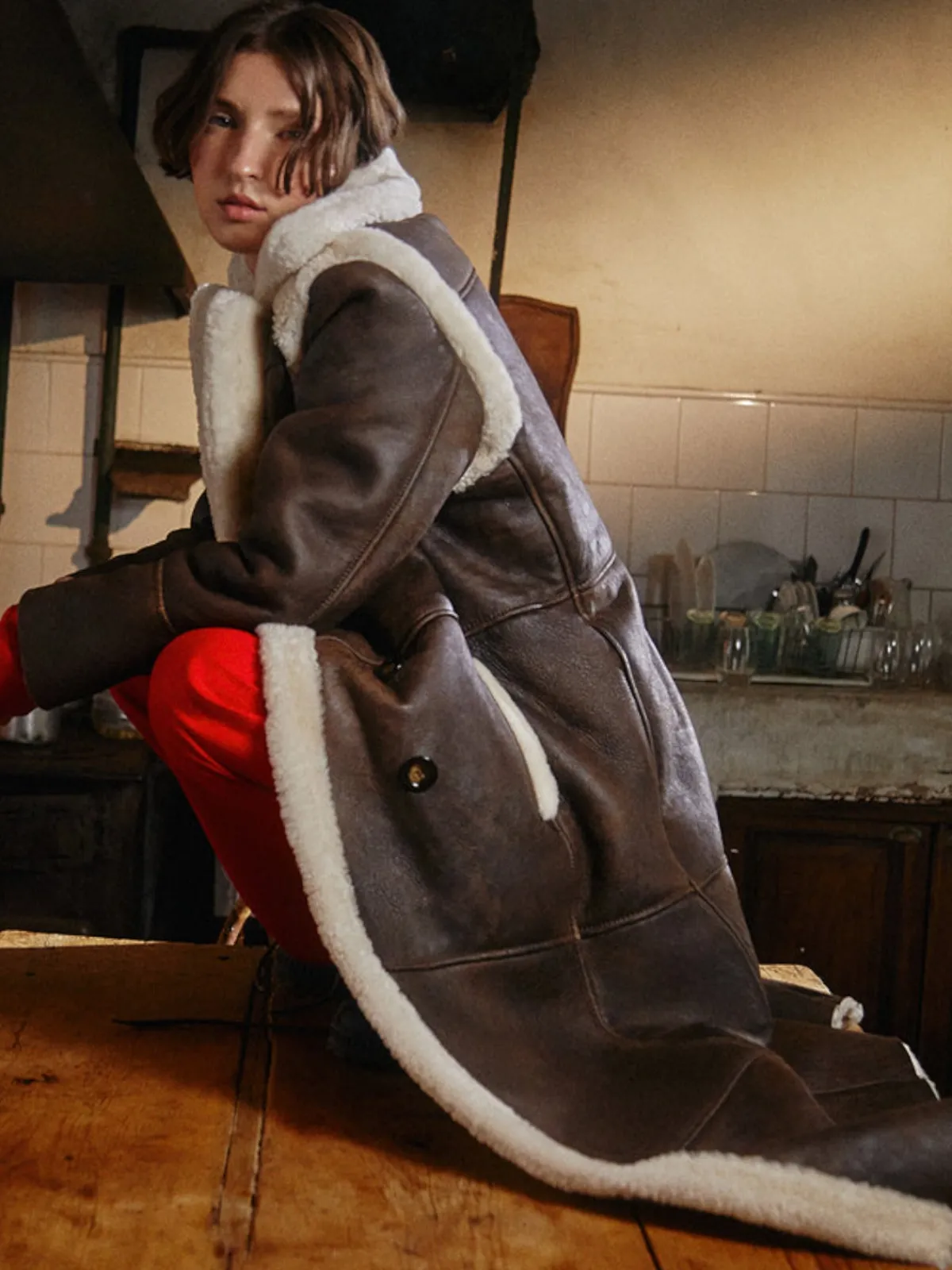 Our Neon Long Coat in Brown is crafted from a soft Napa Leather exterior and a cozy fully lined, high-pile shearling interior. This jacket features a water resistant leather treatment with wool details on the shoulders, pockets, and sleeves. Handcrafted by master artisans in Argentina using locally sourced by-product materials.