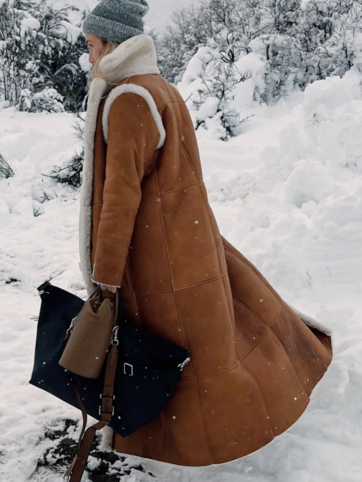 Our Neon Long Coat in Light Brown is crafted from a soft Napa Leather exterior and a cozy fully lined, high-pile shearling interior. This jacket features a water resistant leather treatment with wool details on the shoulders, pockets, and sleeves.Handcrafted by master artisans in Argentina using locally sourced by-product materials.