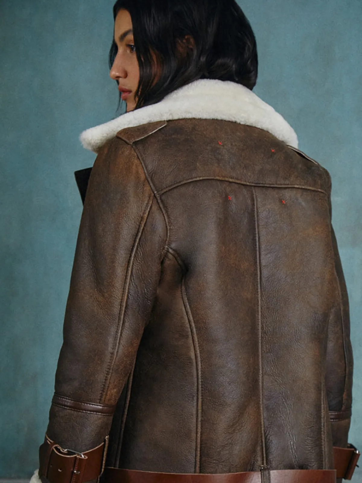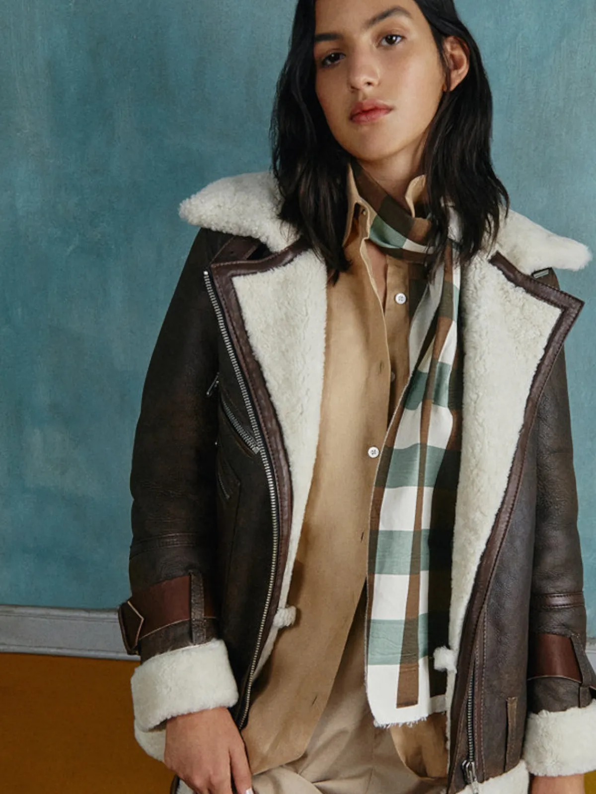Our Melina Pinedo Permett Jacket in Brown is crafted from a soft Napa Leather exterior and a cozy fully lined, high-pile shearling. The jacket features a water resistant leather treatment with four pockets and metallic zippers. Handcrafted by master artisans in Argentina using locally sourced by-product materials.