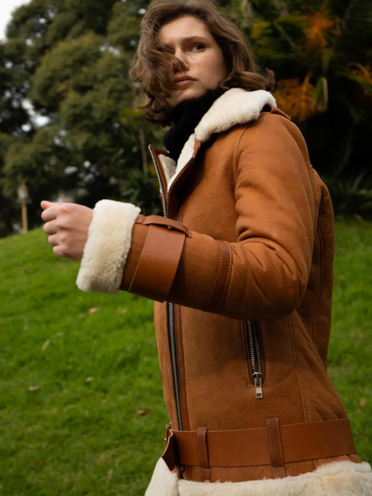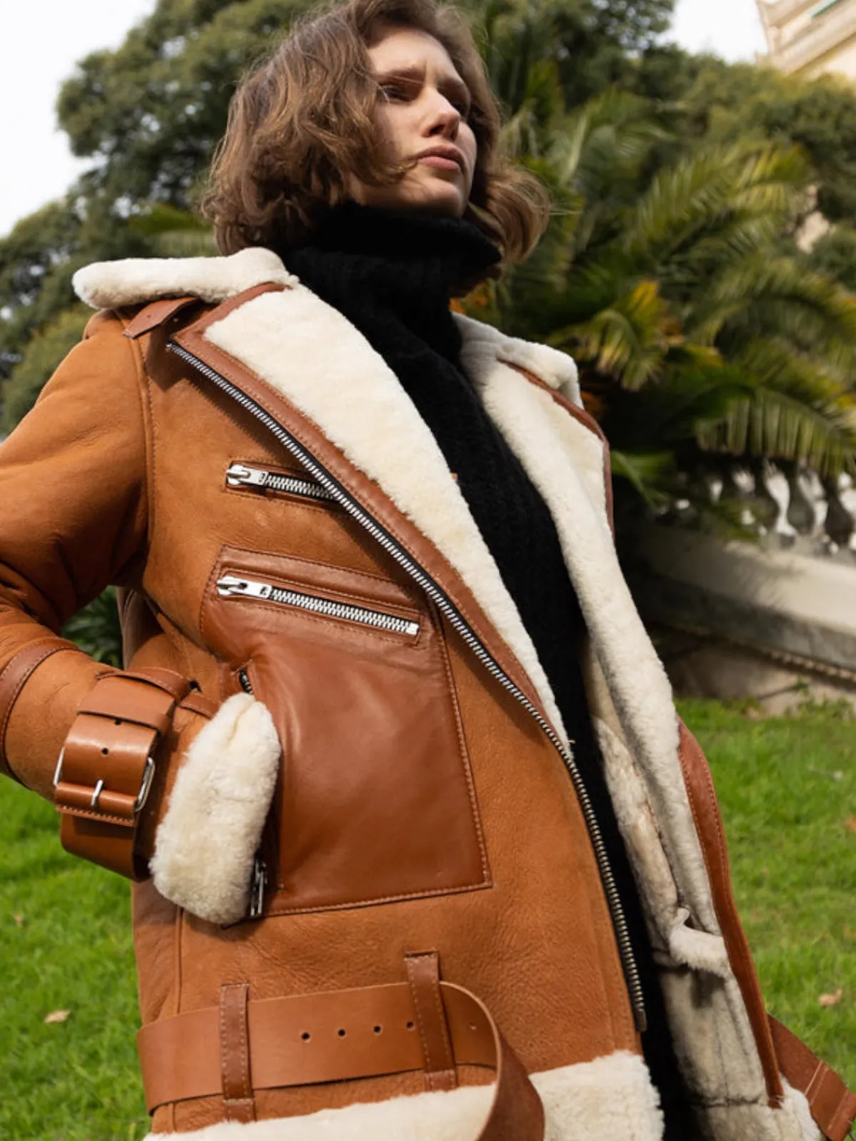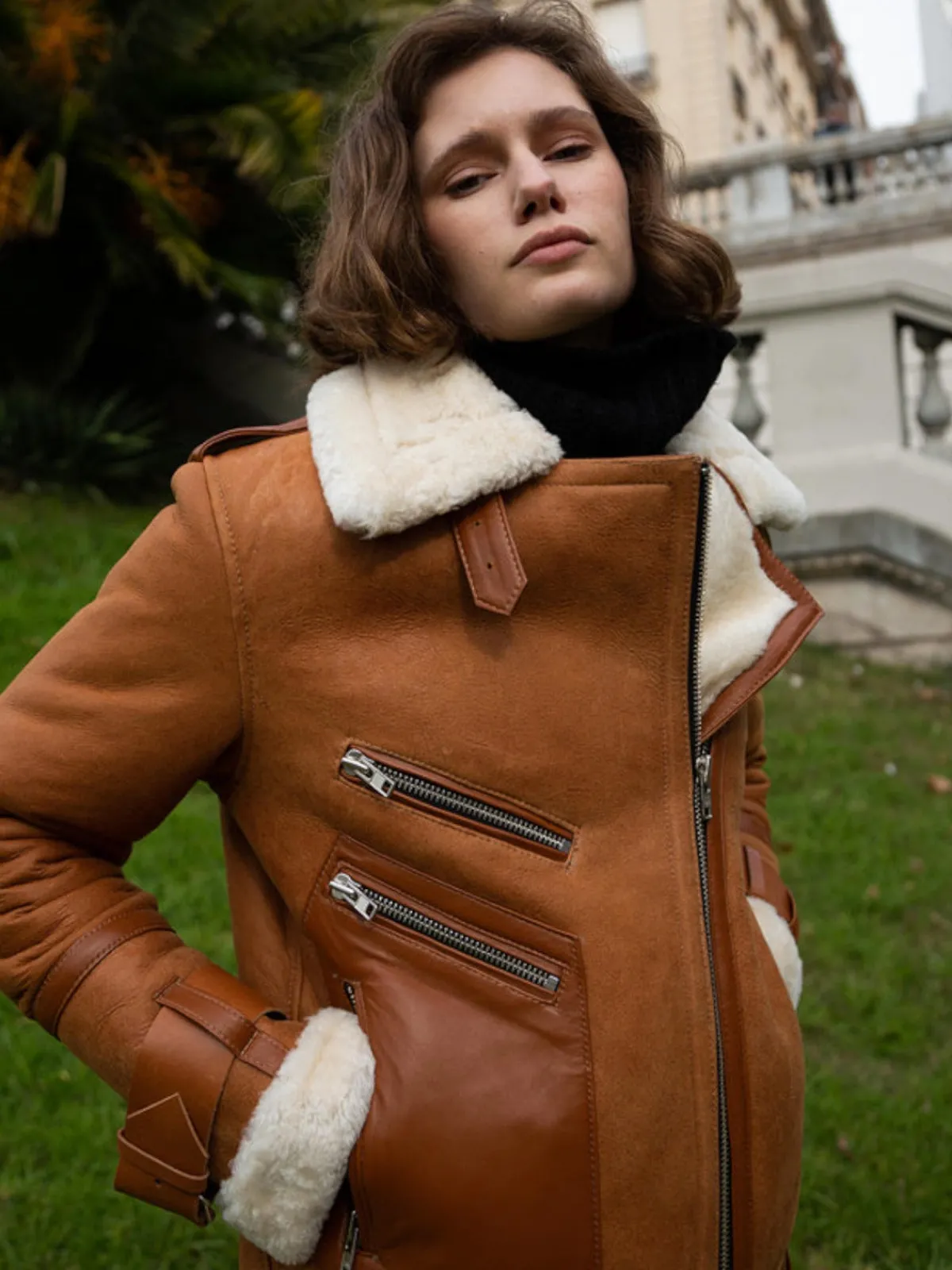 Our Melina Pinedo Permett Jacket in Light Brown is crafted from a soft Napa Leather exterior and a cozy fully lined, high-pile shearling. The jacket features a water resistant leather treatment with four pockets and metallic zippers. Handcrafted by master artisans in Argentina using locally sourced by-product materials.