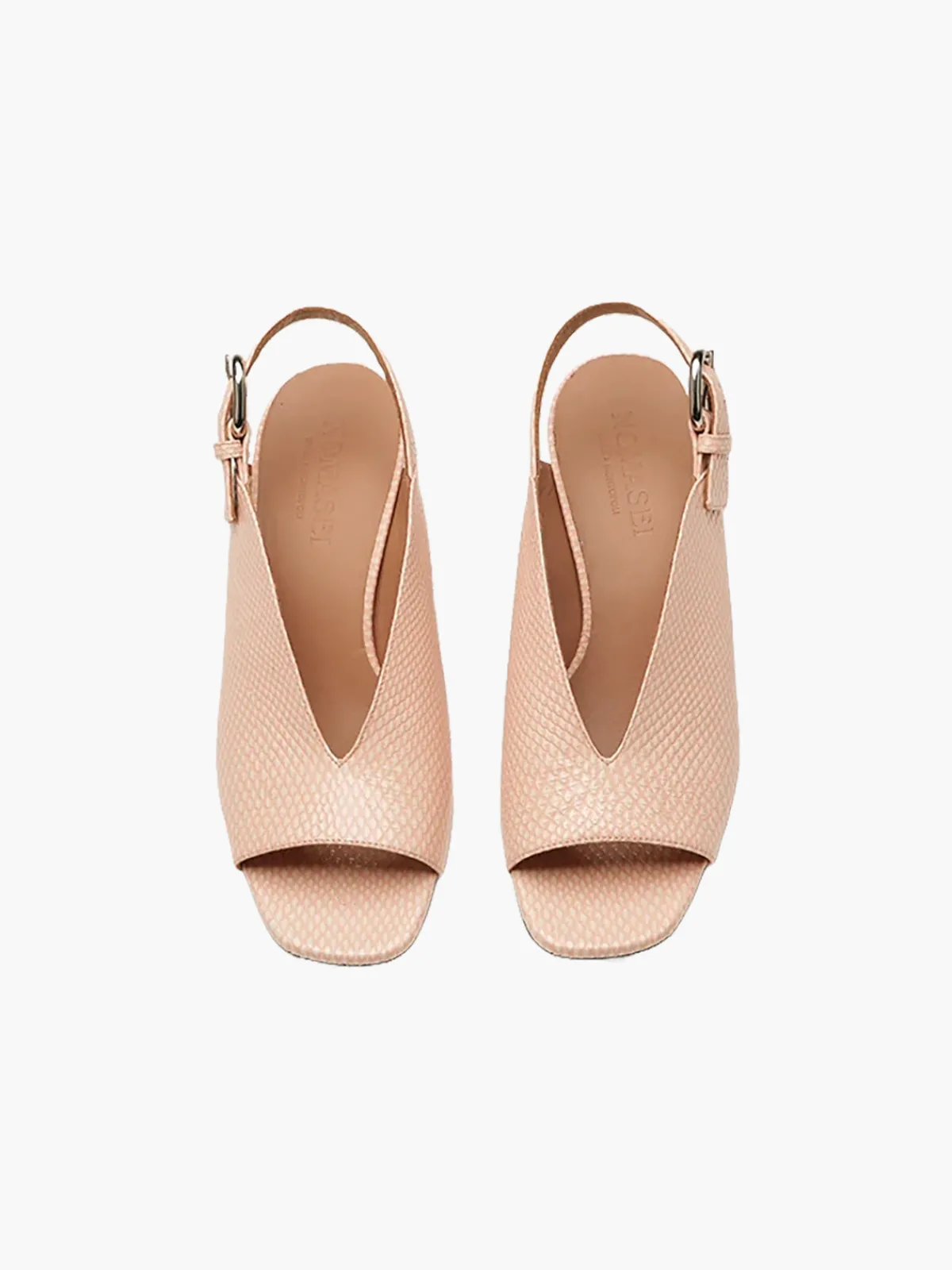 Our NomaseiBaghera Sandal in Smooth Leather Rose features an open toe design with a curved V-shape vamp, chunky stacked heels, andthick adjustable strapat the back of the ankle. Fleece-lined memory foam insoles provide all-day comfort. Handcrafted by artisans in Italy.