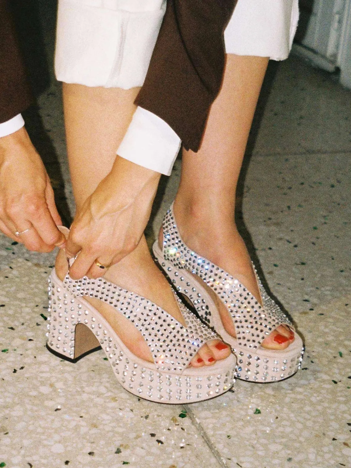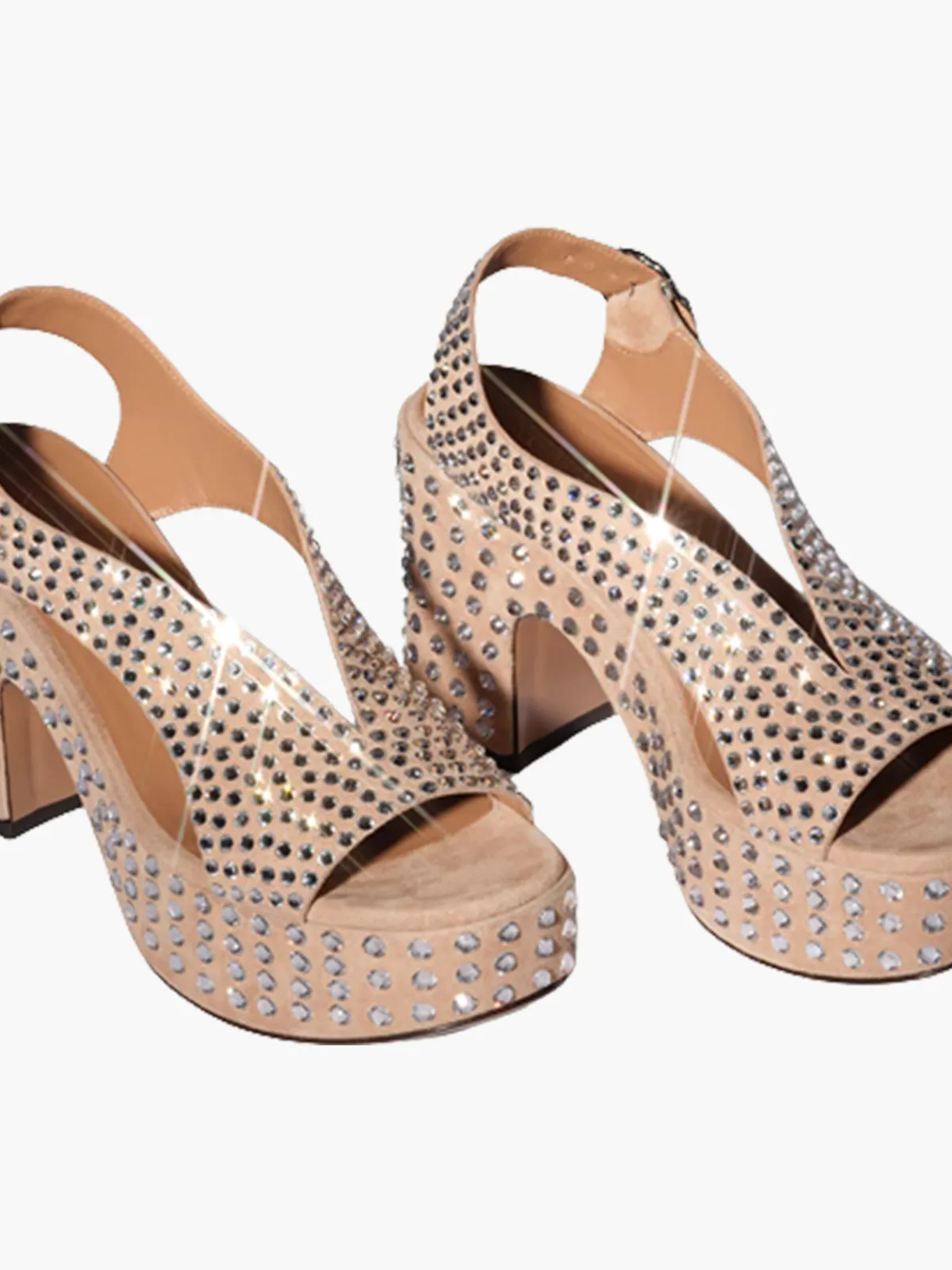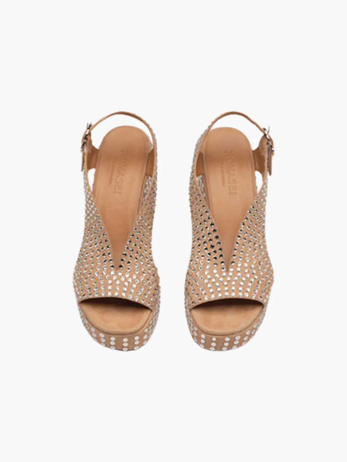 Our Nomasei Taxi Sandal in Nude Crystal features an open toe design a chunky platform and a beautiful rhinestone detailing all along the shoe.Thisshoehasa9cm heel, ideal for all day wear.The insole is padded with memory foamguaranteeing greater comfort for a whole day.Handcrafted by artisans in Italy.
