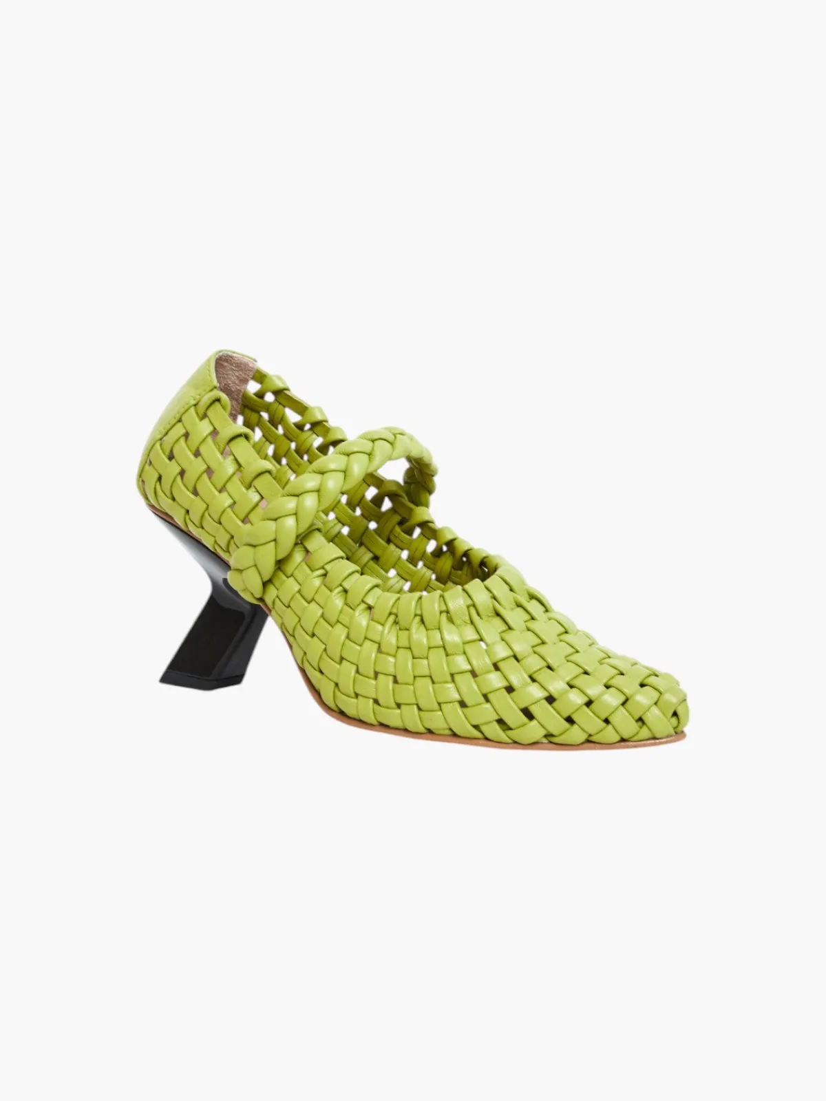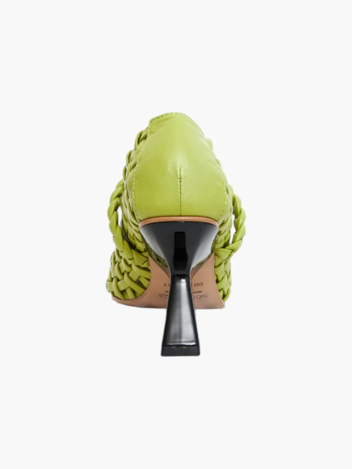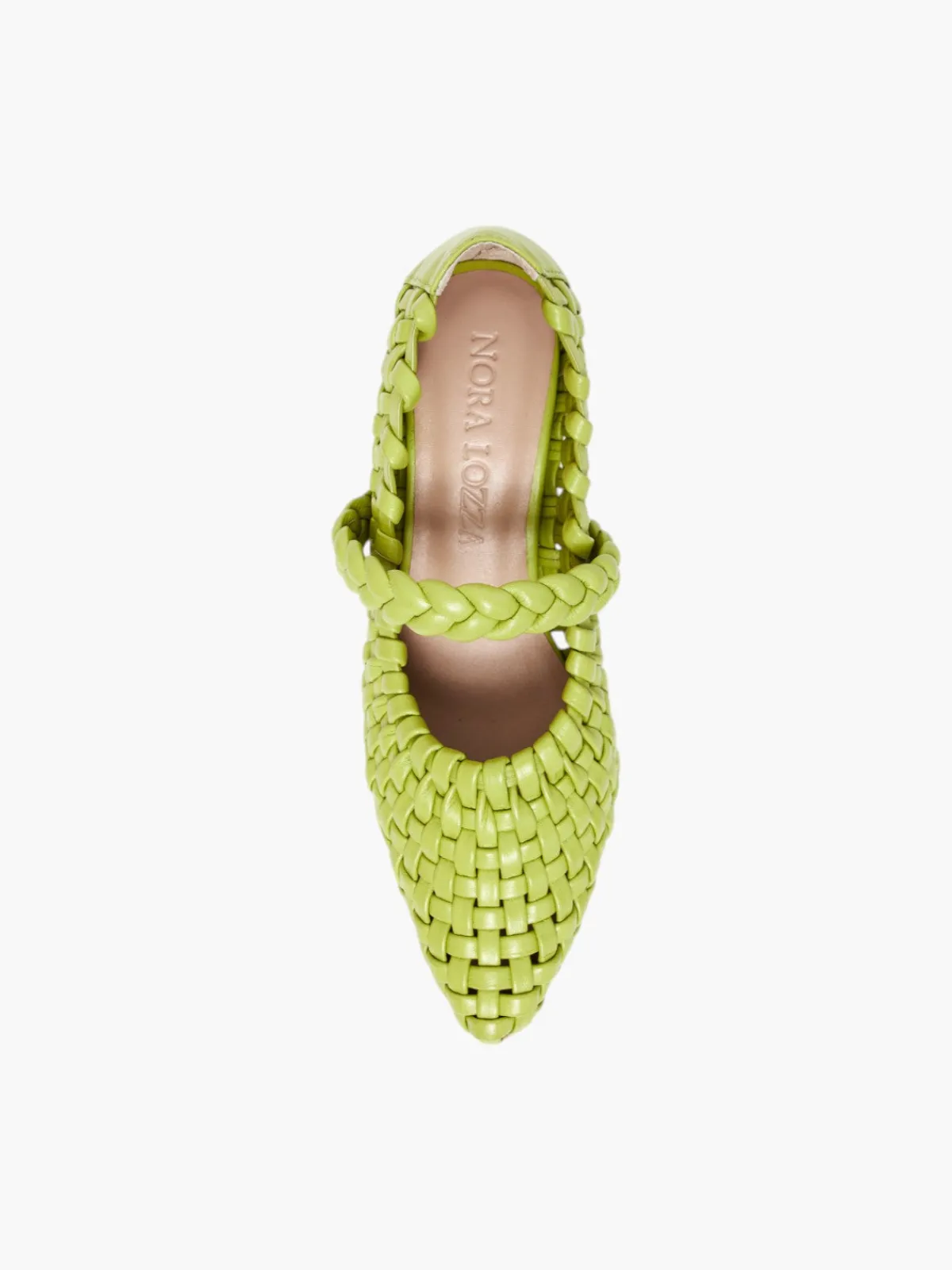 Our Nora Lozza Allende Heel in Lime Green is a hand-woven heel that is meticulously crafted from supple bovine leather to offer both elegance and comfort. The intricate braided detail across the instep ensures a superior fit, gently contouring to the foot for a personalized feel. Handcrafted by artisans in Colombia.