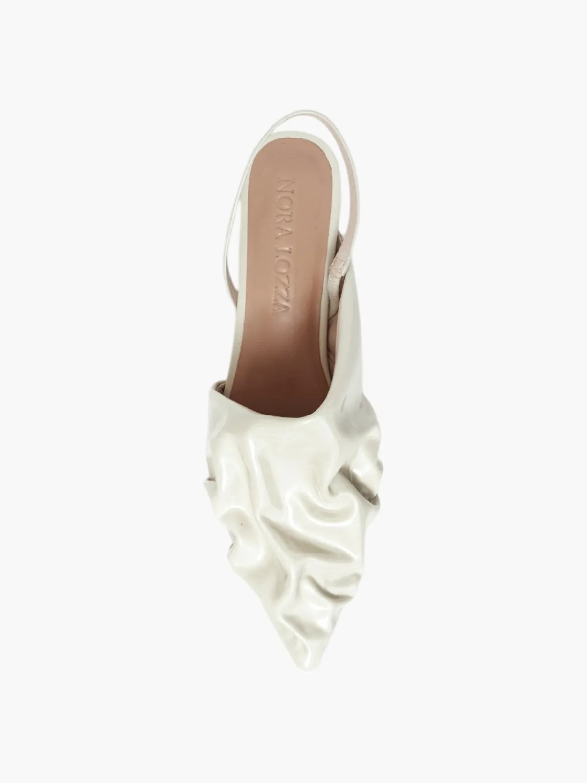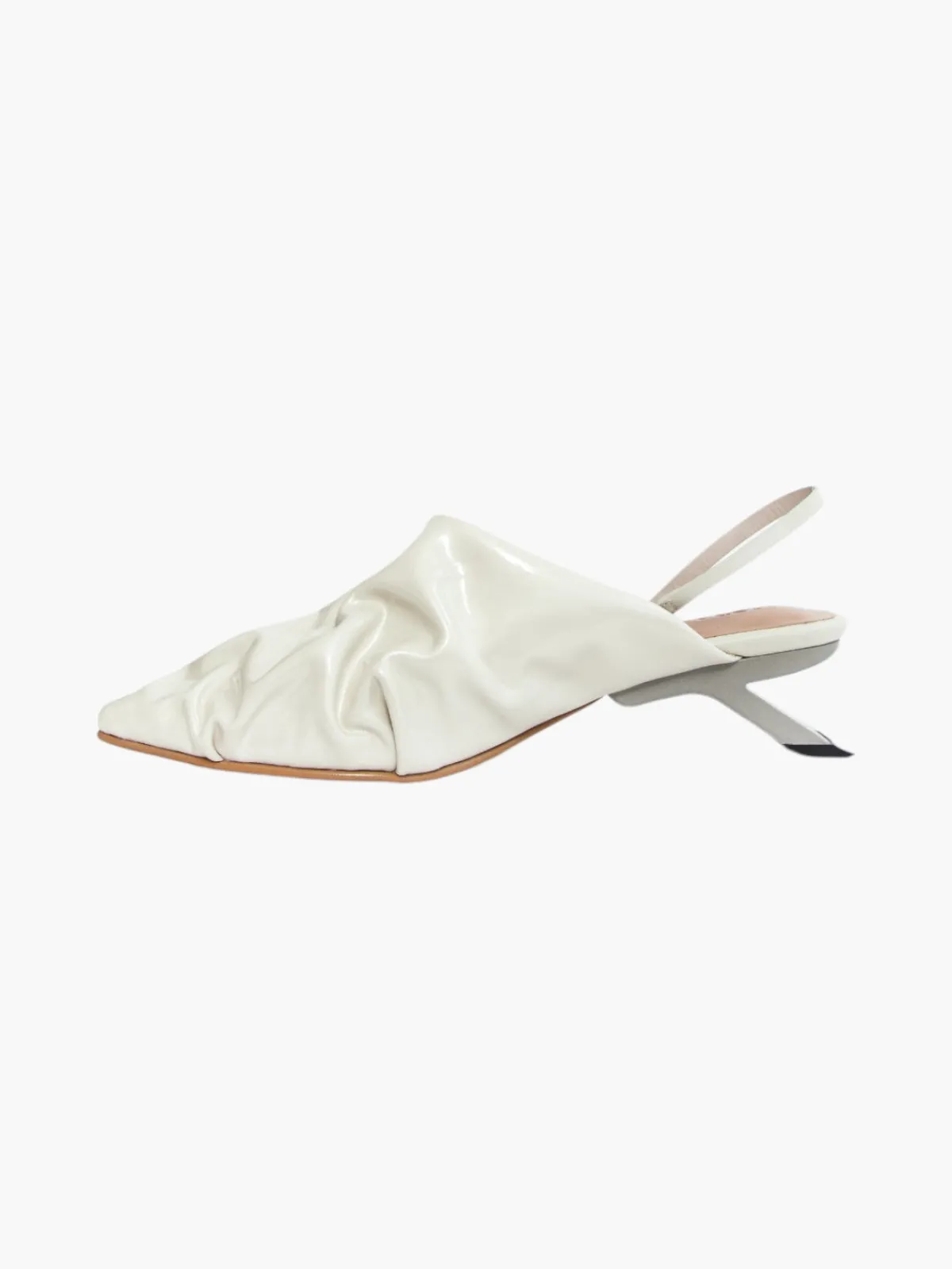 Our Nora Lozza Sueco Flat in White have a sleek, sculpted design, accentuated by a pointed insole that enhances their refined silhouette. An adjustable 1 cm wide heel strap, secured with elastic for a flawless fit, combines both comfort and style. Lined with soft, natural suede for a truly luxurious feel, and finished with a distinctive T-shaped heel, these clogs effortlessly fuse modern sophistication with timeless charm. Handcrafted by female artisans in Colombia.