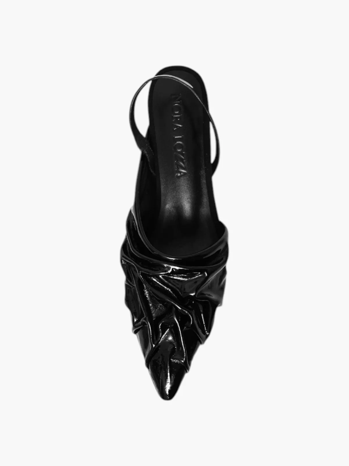 Our Nora Lozza Sueco Flat in Black have a sleek, sculpted design, accentuated by a pointed insole that enhances their refined silhouette. An adjustable 1 cm wide heel strap, secured with elastic for a flawless fit, combines both comfort and style. Lined with soft, natural suede for a truly luxurious feel, and finished with a distinctive T-shaped heel, these clogs effortlessly fuse modern sophistication with timeless charm. Handcrafted by female artisans in Colombia.
