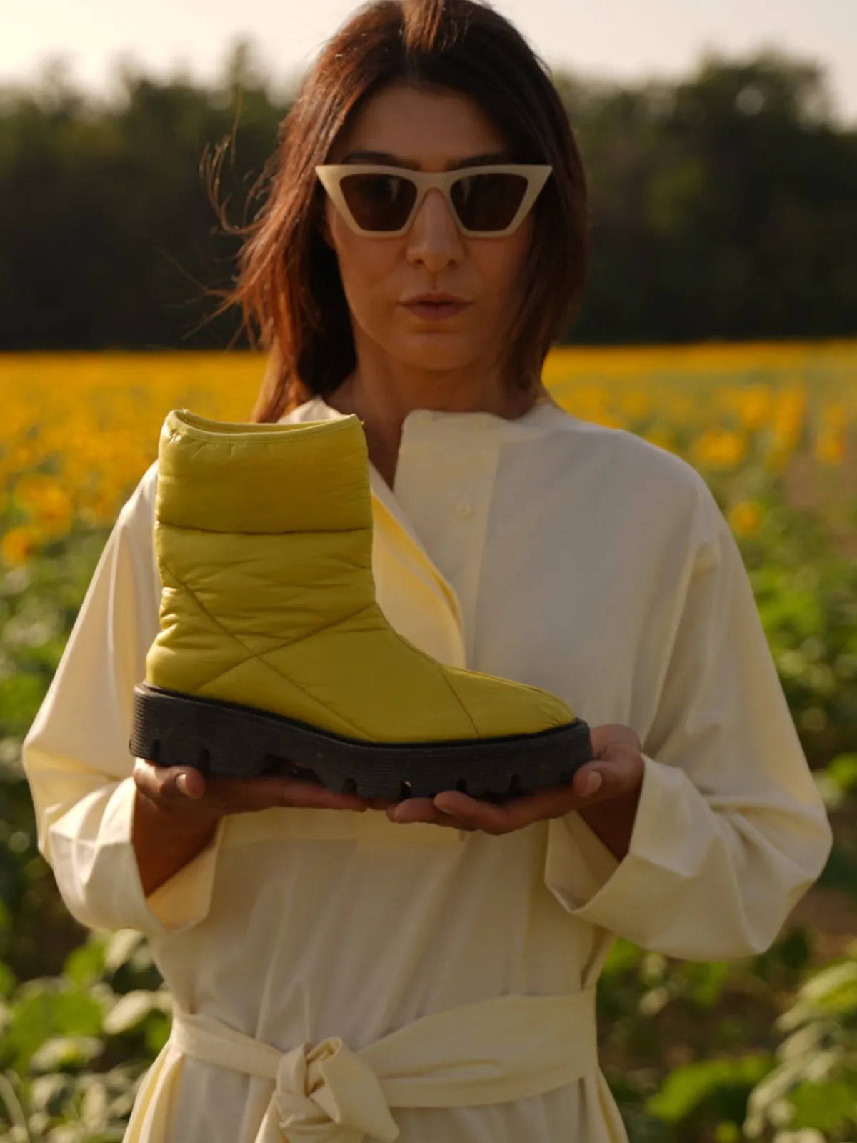 Our O2 Monde Damu Boot in Sunis apull-on bootie was crafted from aquilted recycled piumino nylon and a lug-sole for comfort.Handcrafted by artisans in Italy.