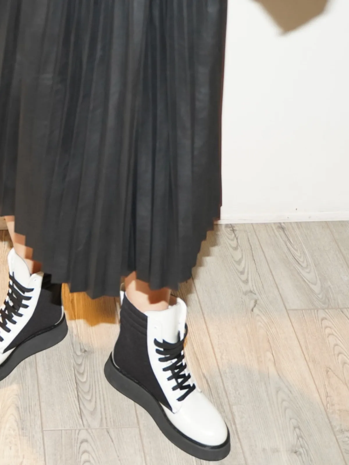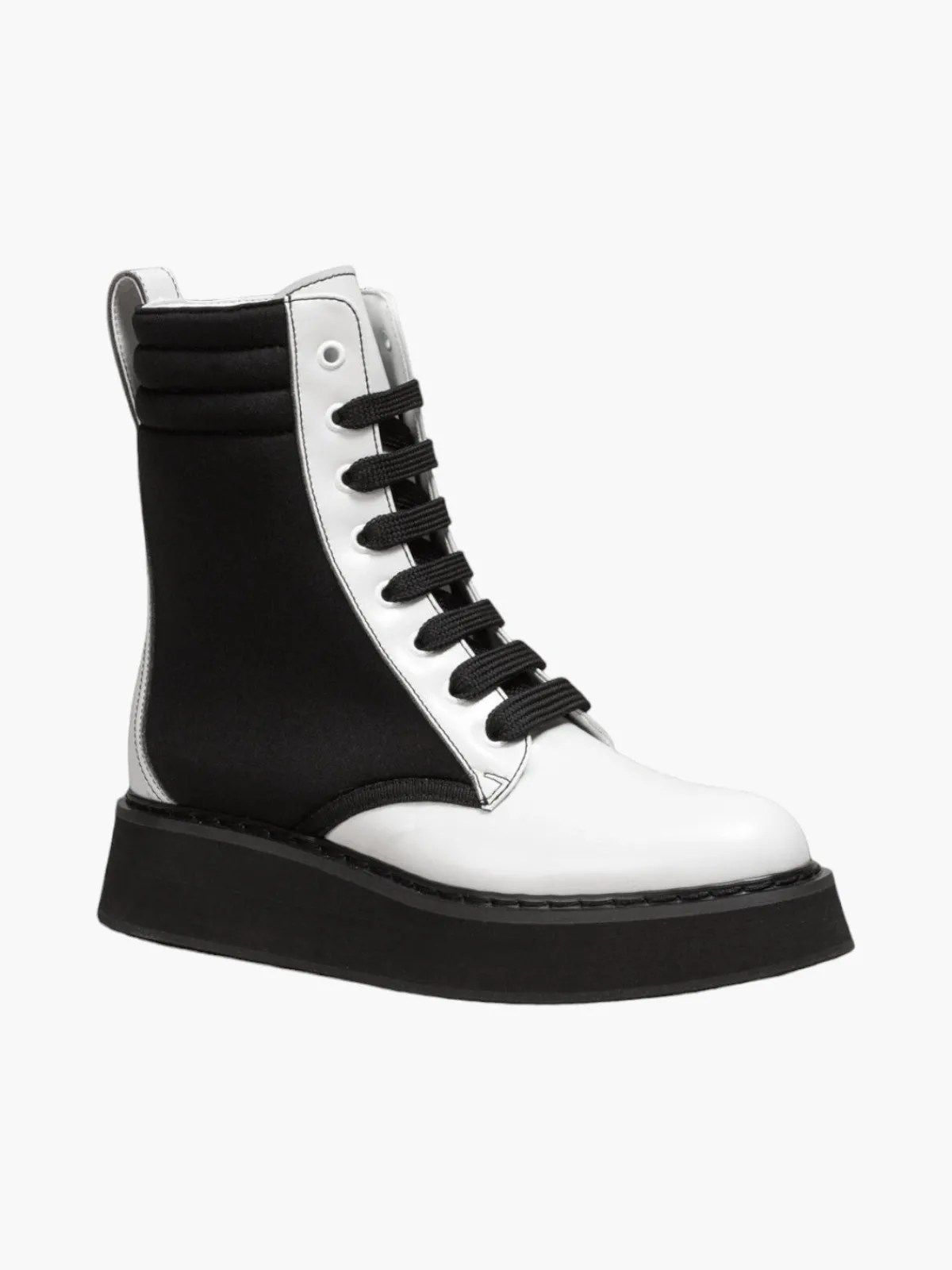 Our O2 Monde Gaia Boot inWhite is an ankle height boot featuring front laces and a subtle platform.Handcrafted by artisans in Italy.