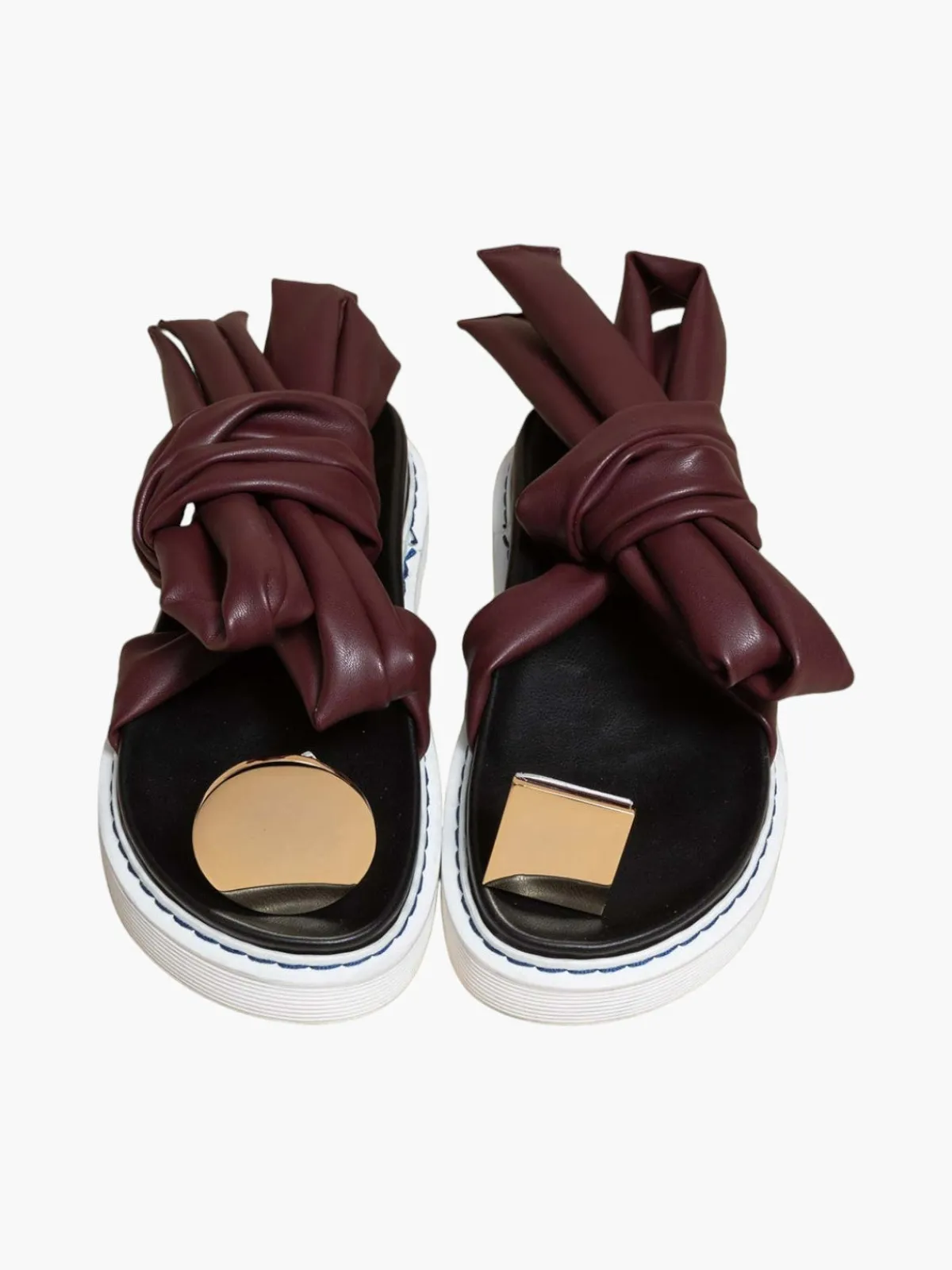 Our O2 Monde Jik Sandal in Bordeaux features laced straps that tie in the back with gold circle toe rings.Handcrafted by artisans in Italy.