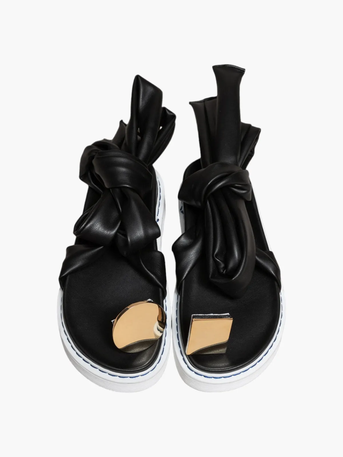 Our O2 Monde Jik Sandal in Black features laced straps that tie in the back with gold circle toe rings.Handcrafted by artisans in Italy.