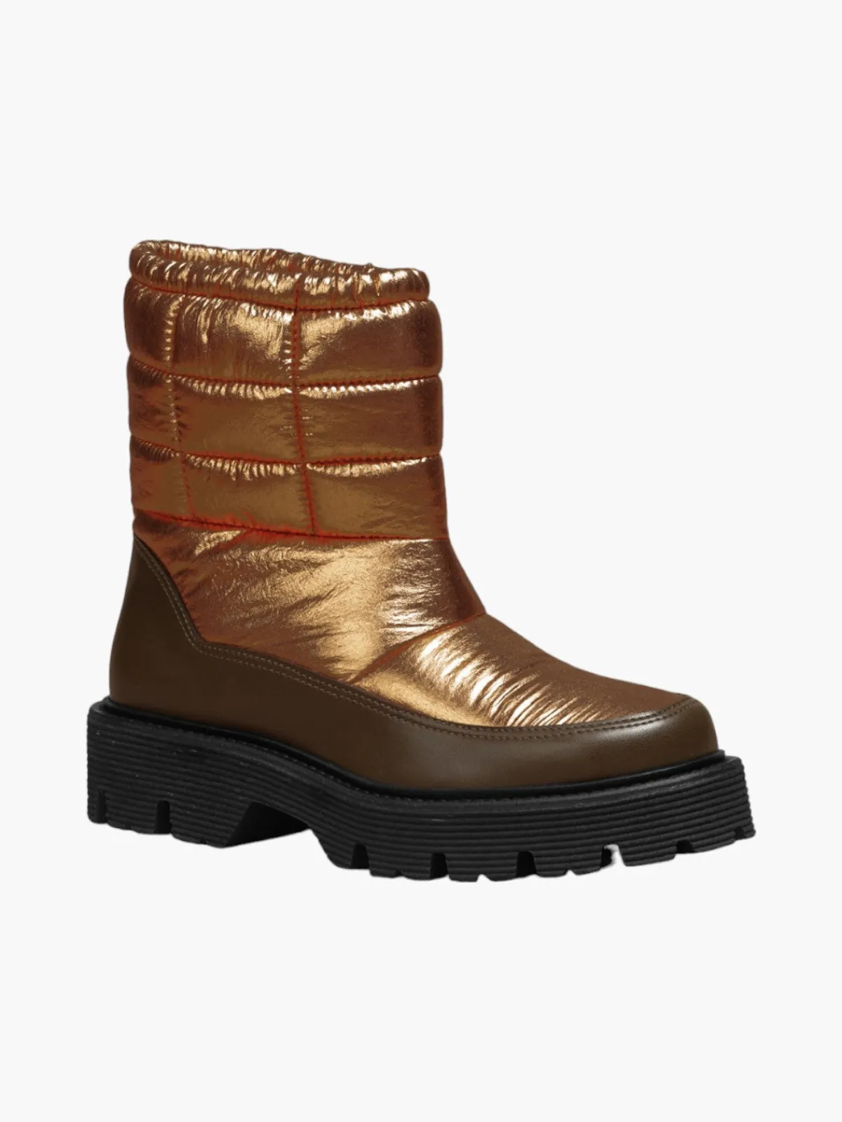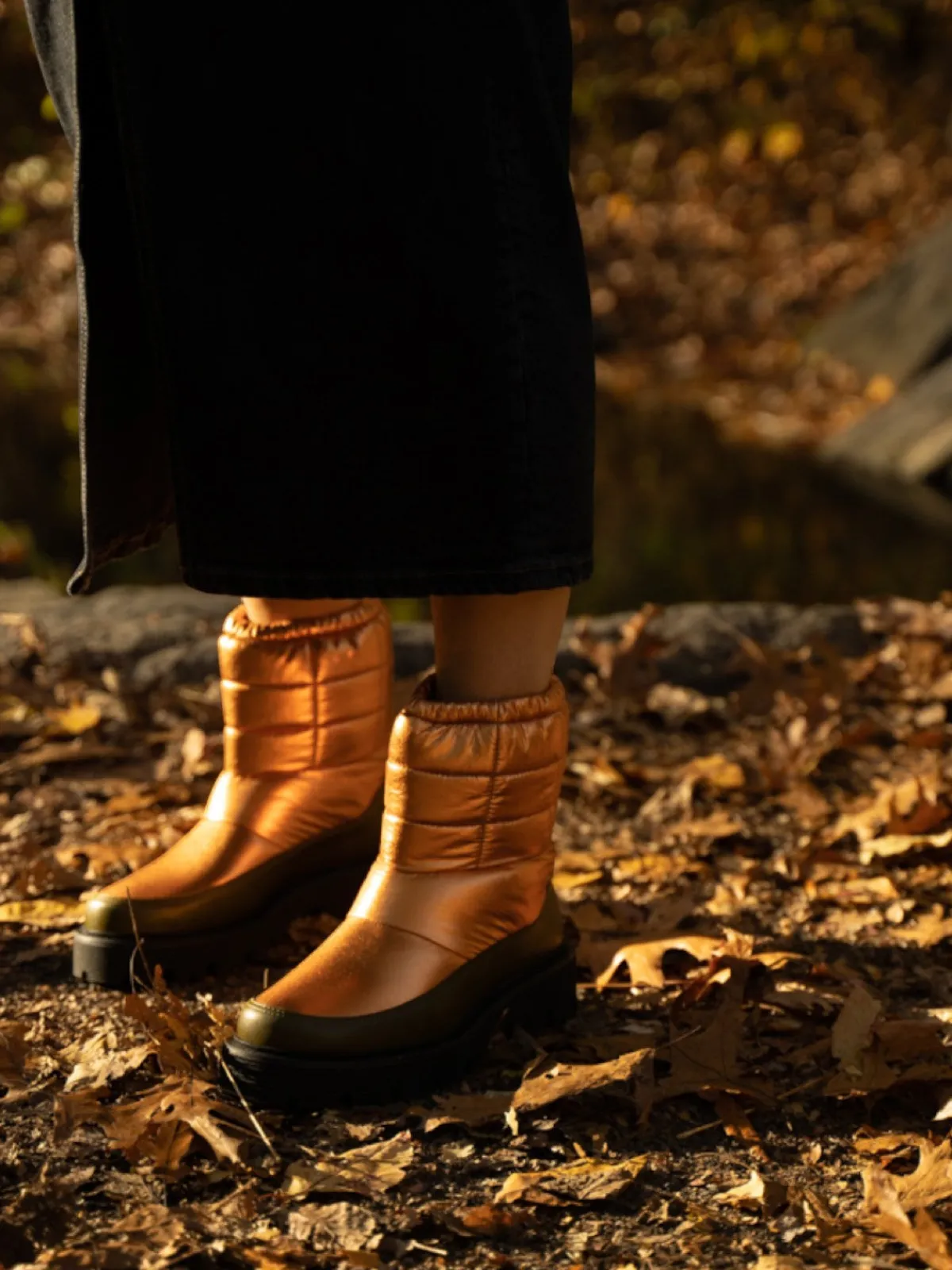 Conjuring the visions of enlightenment seen in the local Korean mountain spirits, our moon boots are grounded in a modern approach to conscientious craftsmanship. Its quilted construction in puffed vegan leather showcases our pledge to the environment, while lug soles evoke a discipline in design.